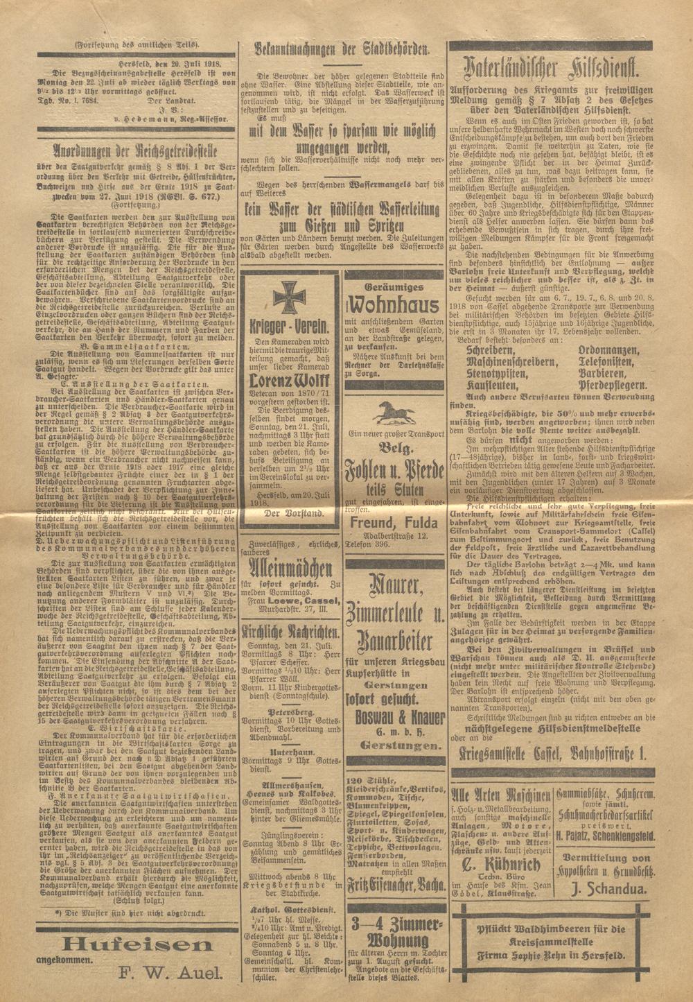 Hersfelder Tageblatt. 1913-1933