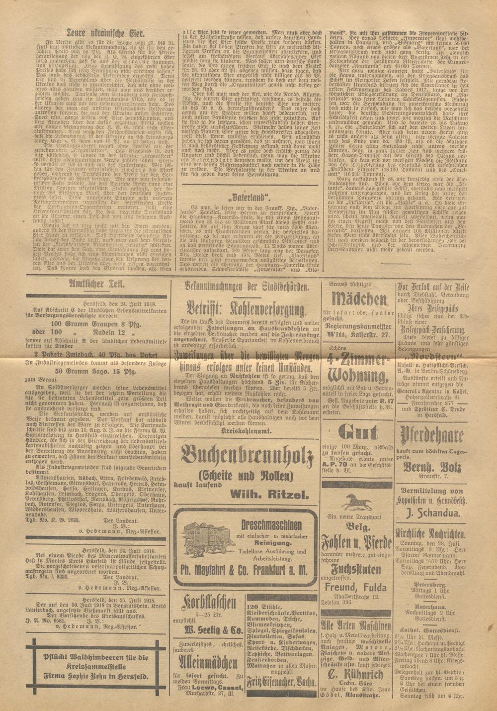 Hersfelder Tageblatt. 1913-1933