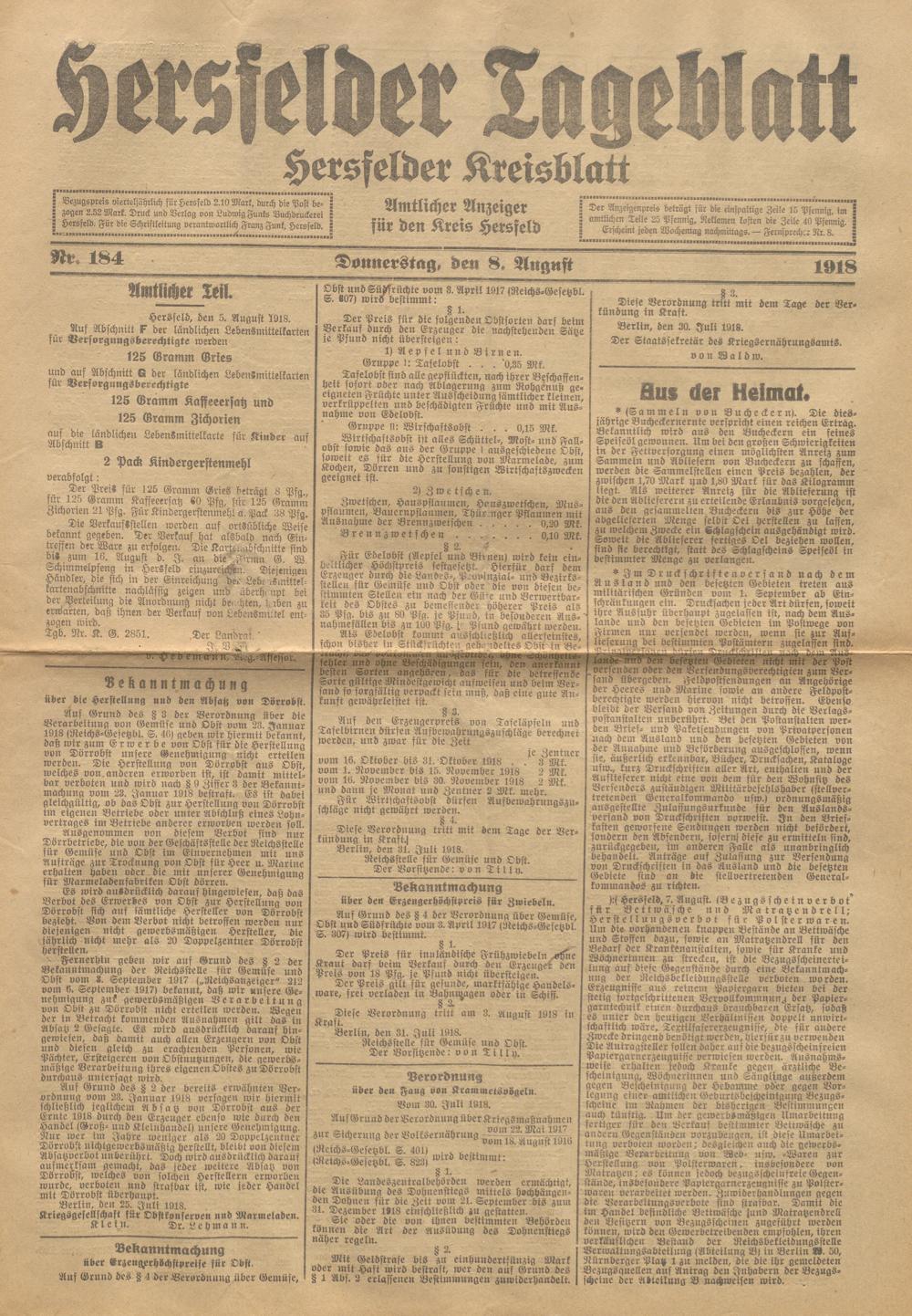 Hersfelder Tageblatt. 1913-1933