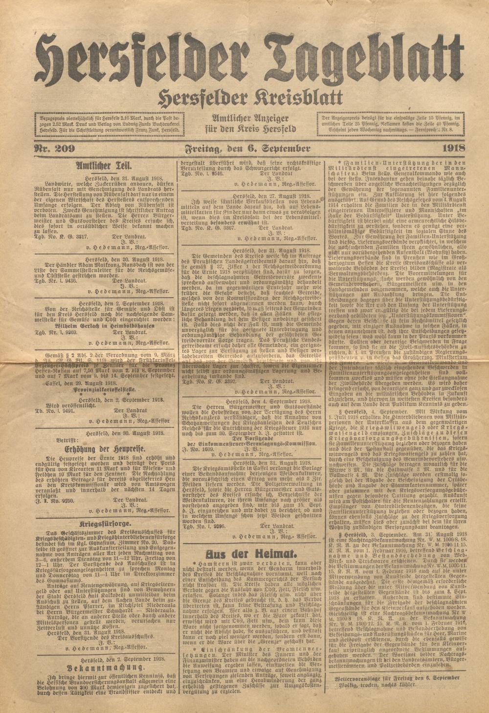 Hersfelder Tageblatt. 1913-1933