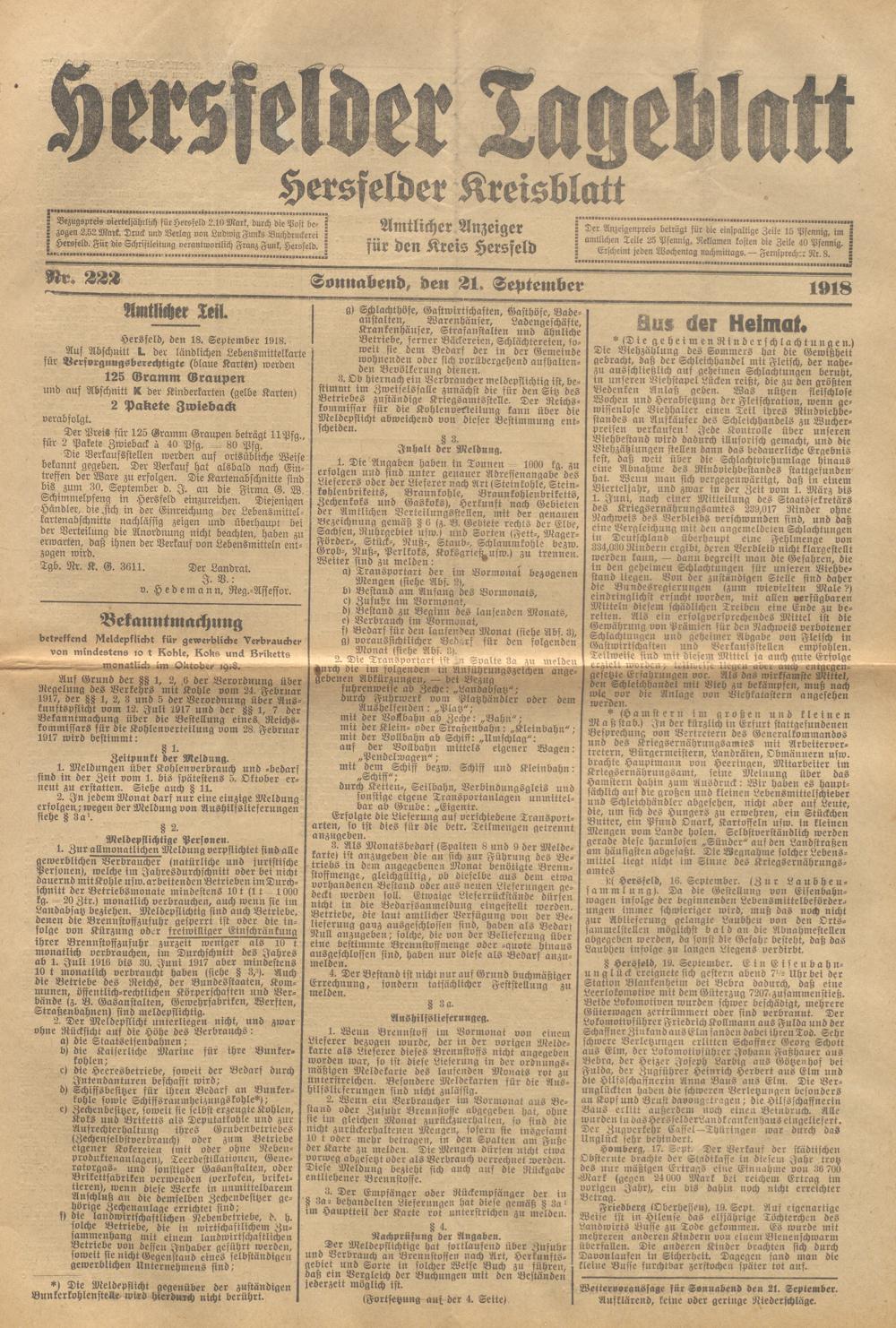 Hersfelder Tageblatt. 1913-1933