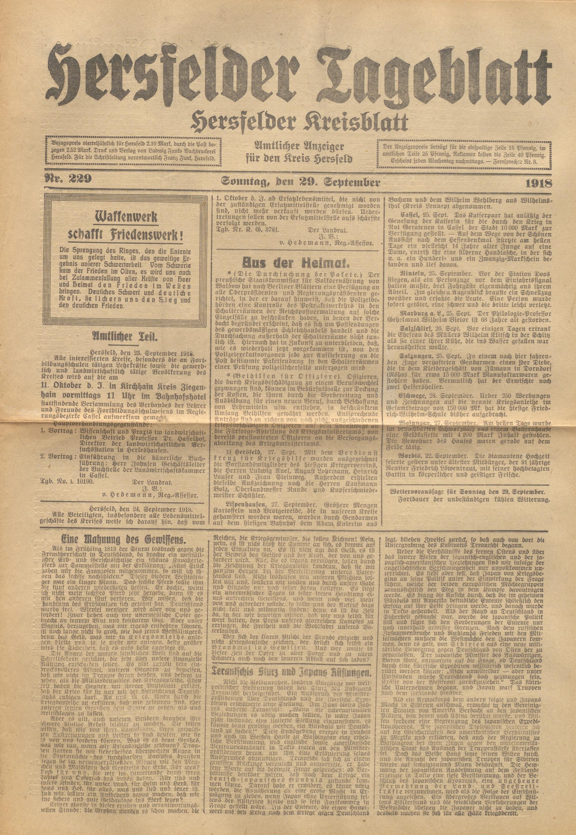 Hersfelder Tageblatt. 1913-1933