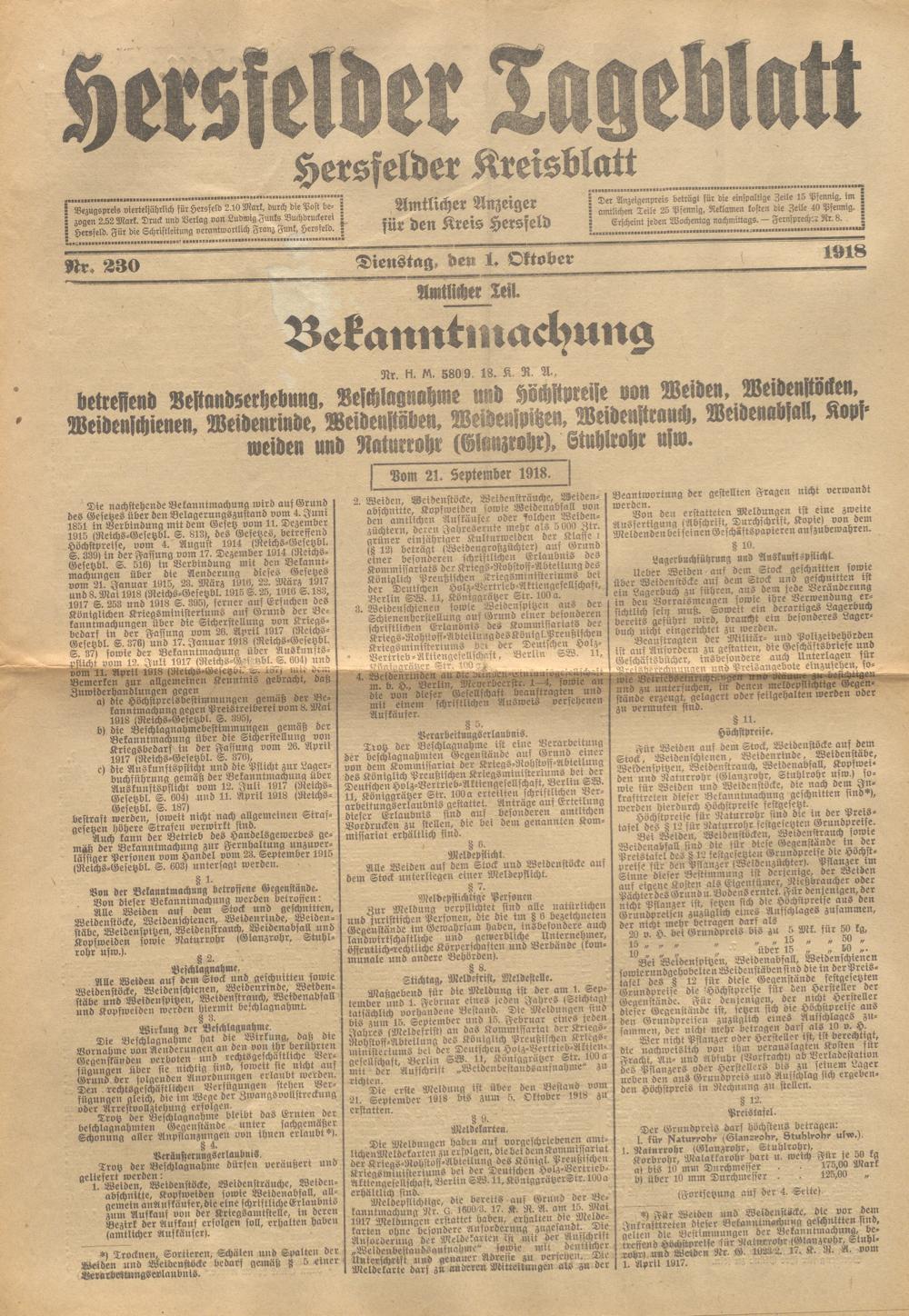 Hersfelder Tageblatt. 1913-1933