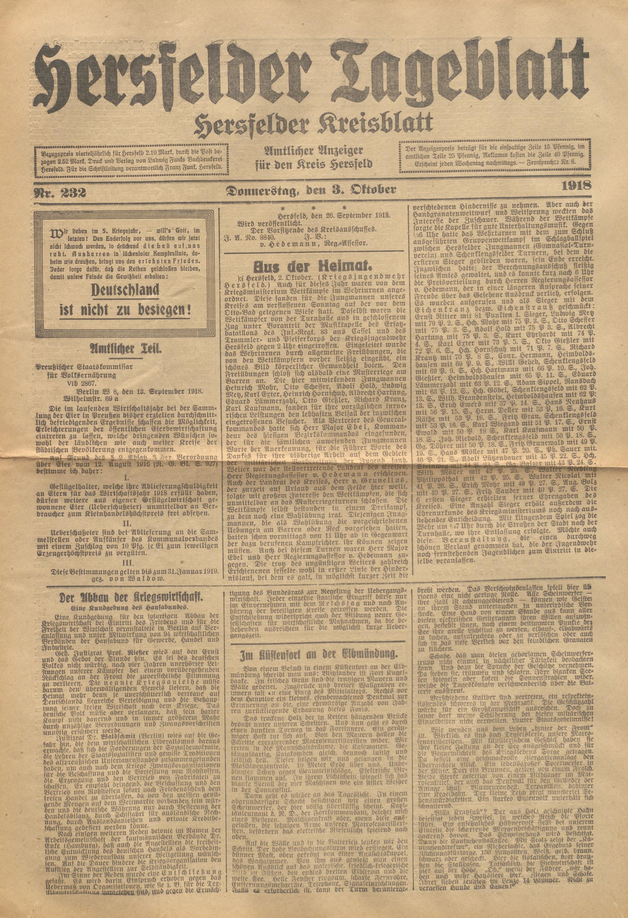 Hersfelder Tageblatt. 1913-1933