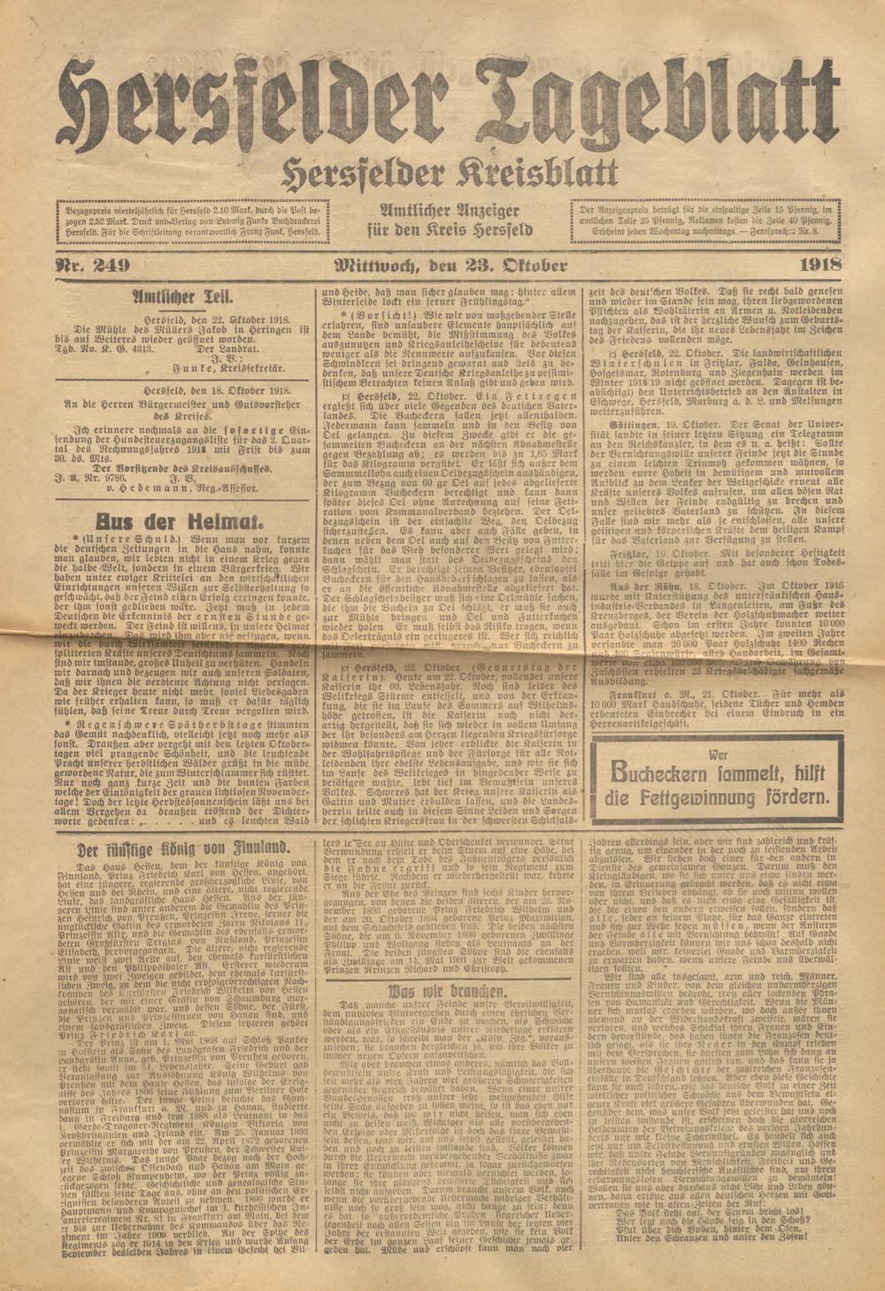 Hersfelder Tageblatt. 1913-1933