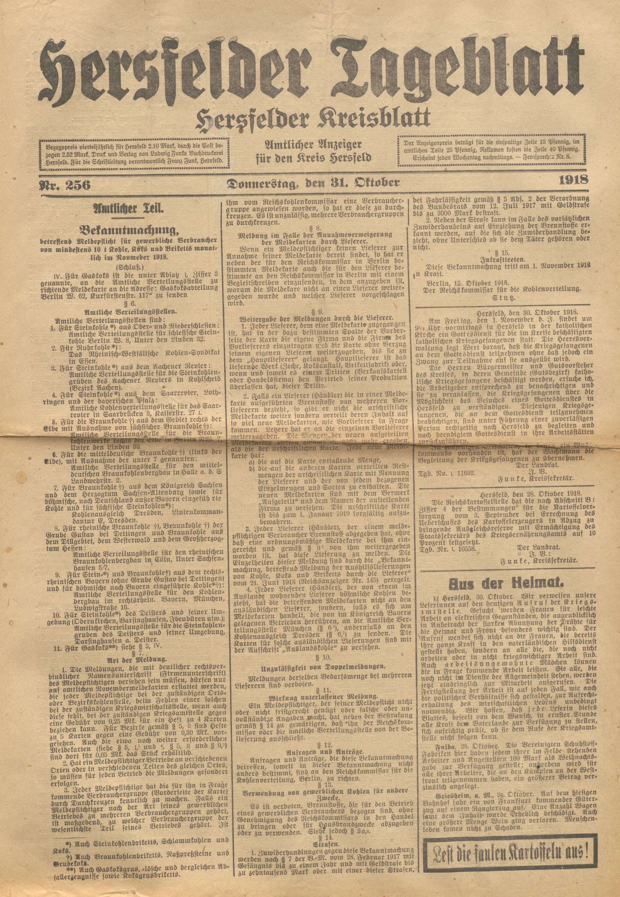 Hersfelder Tageblatt. 1913-1933