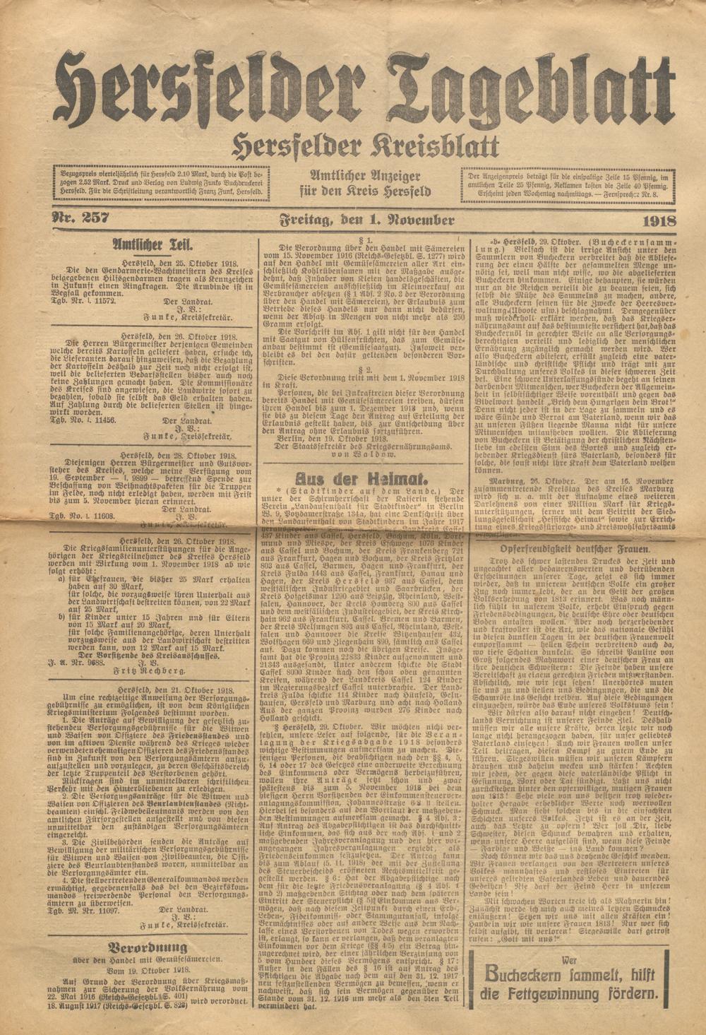 Hersfelder Tageblatt. 1913-1933