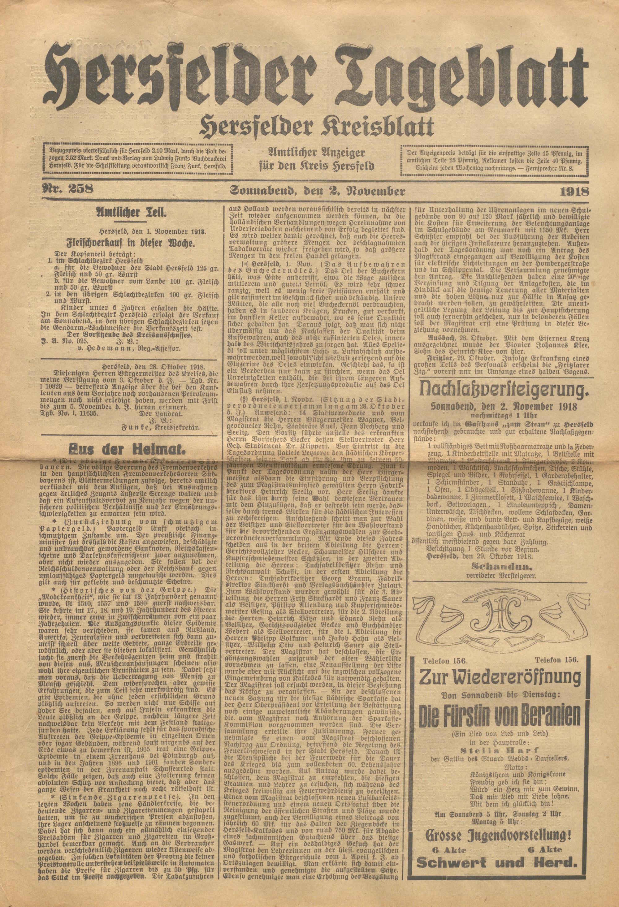 Hersfelder Tageblatt. 1913-1933