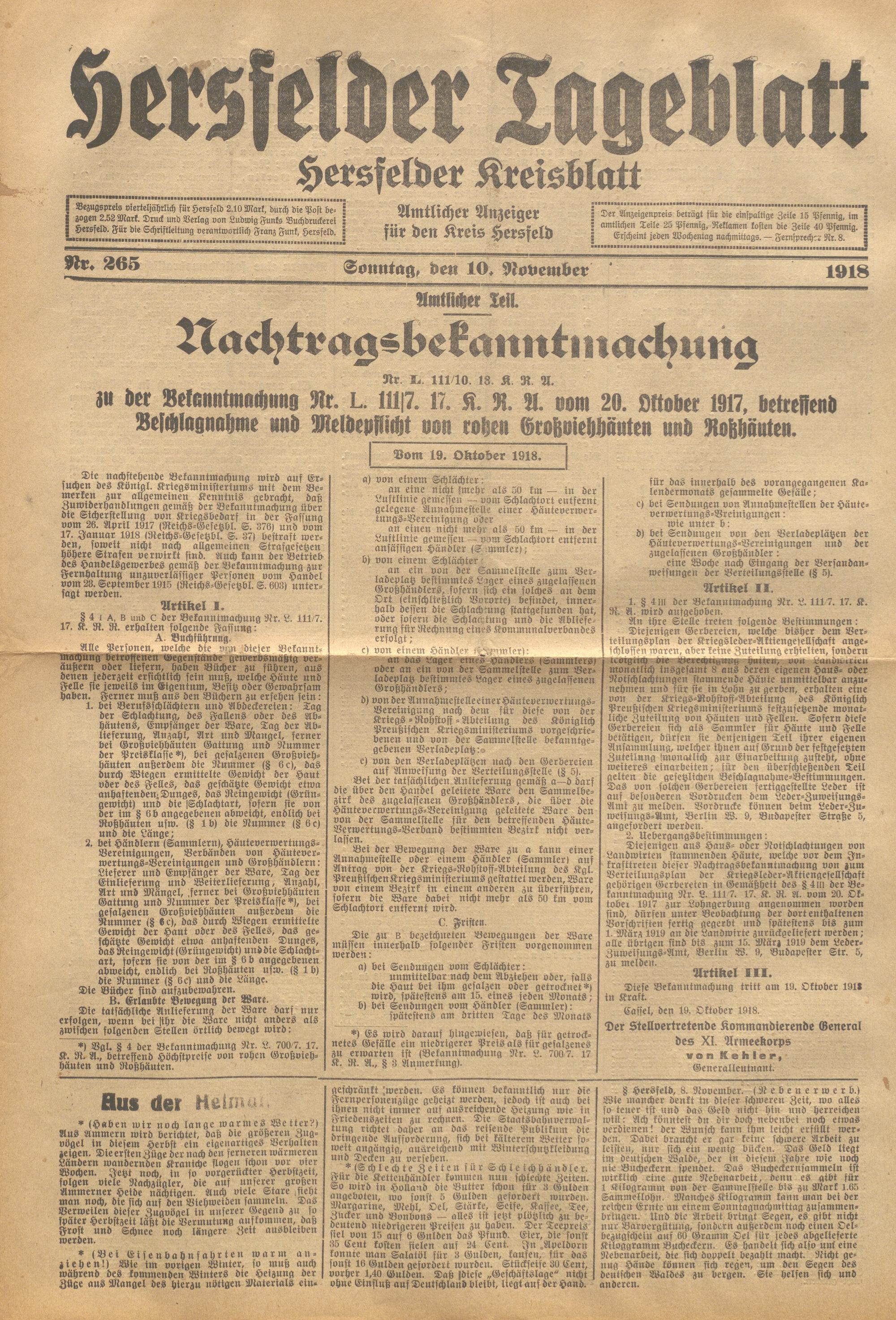 Hersfelder Tageblatt. 1913-1933