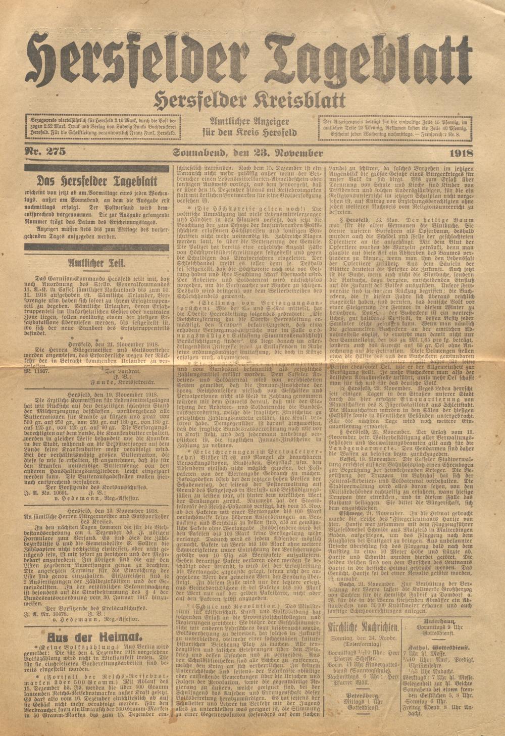 Hersfelder Tageblatt. 1913-1933
