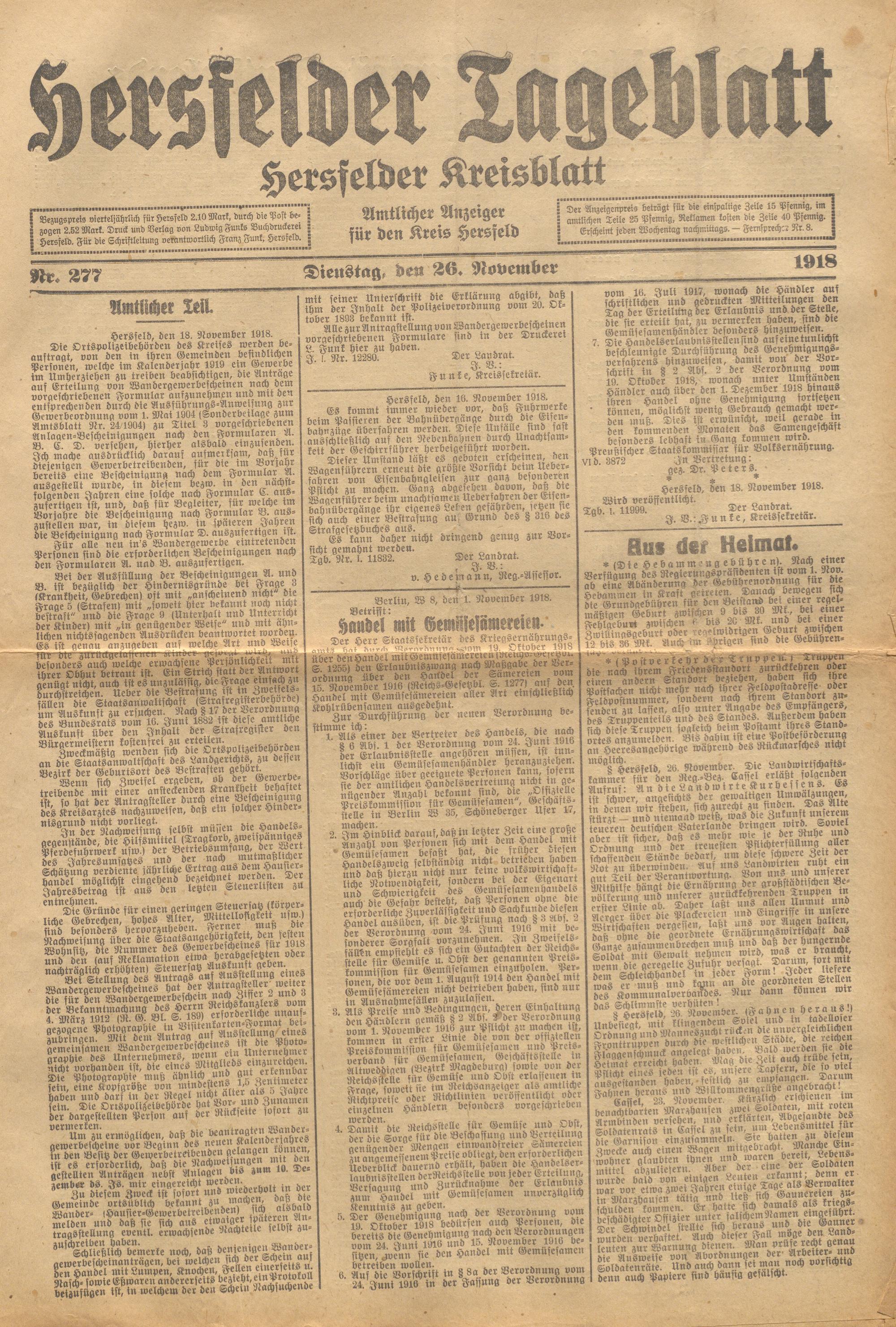 Hersfelder Tageblatt. 1913-1933