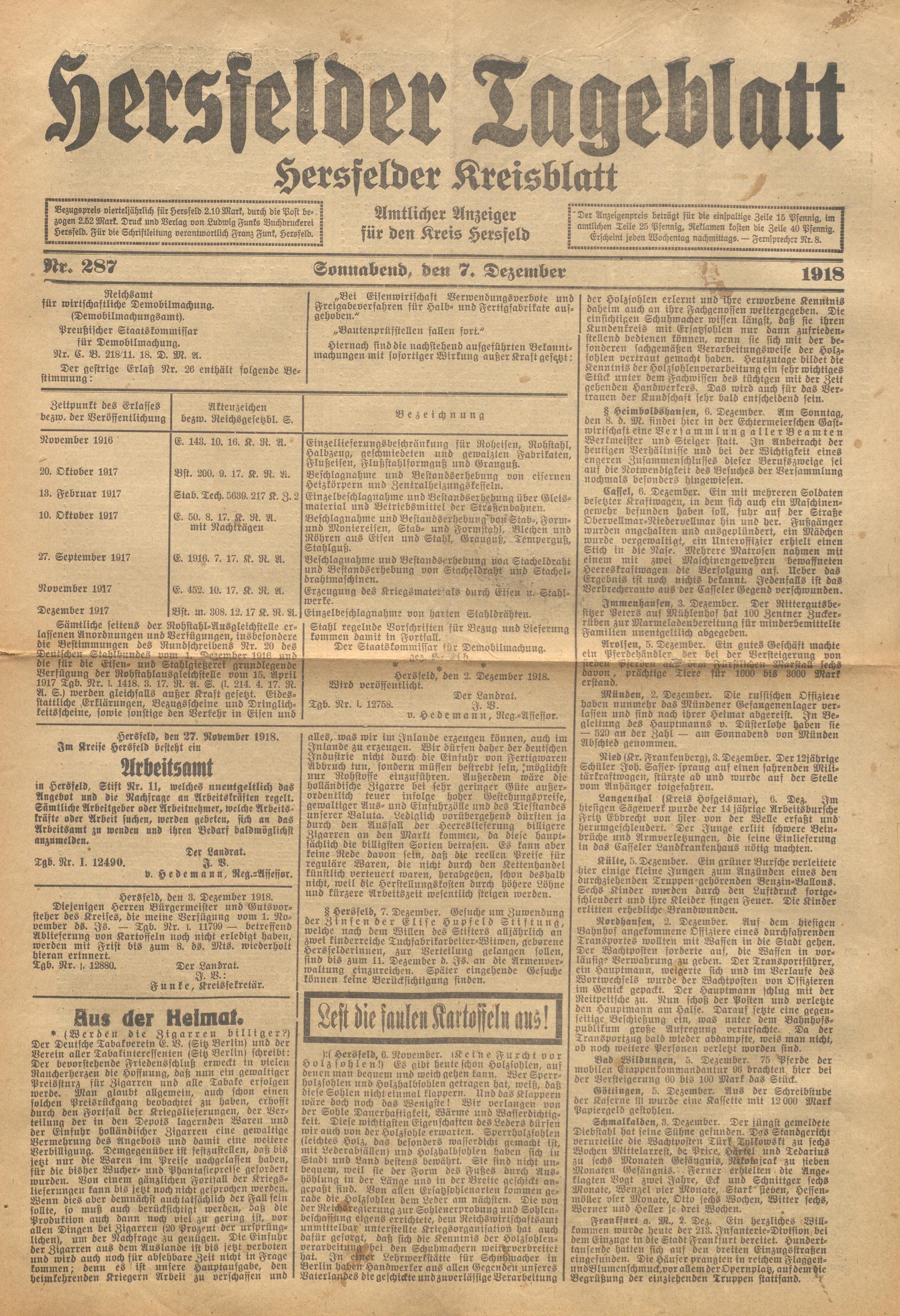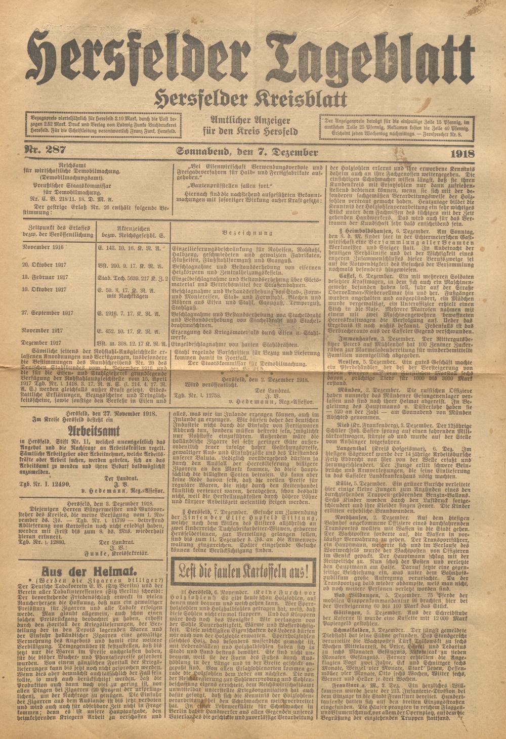 Hersfelder Tageblatt. 1913-1933