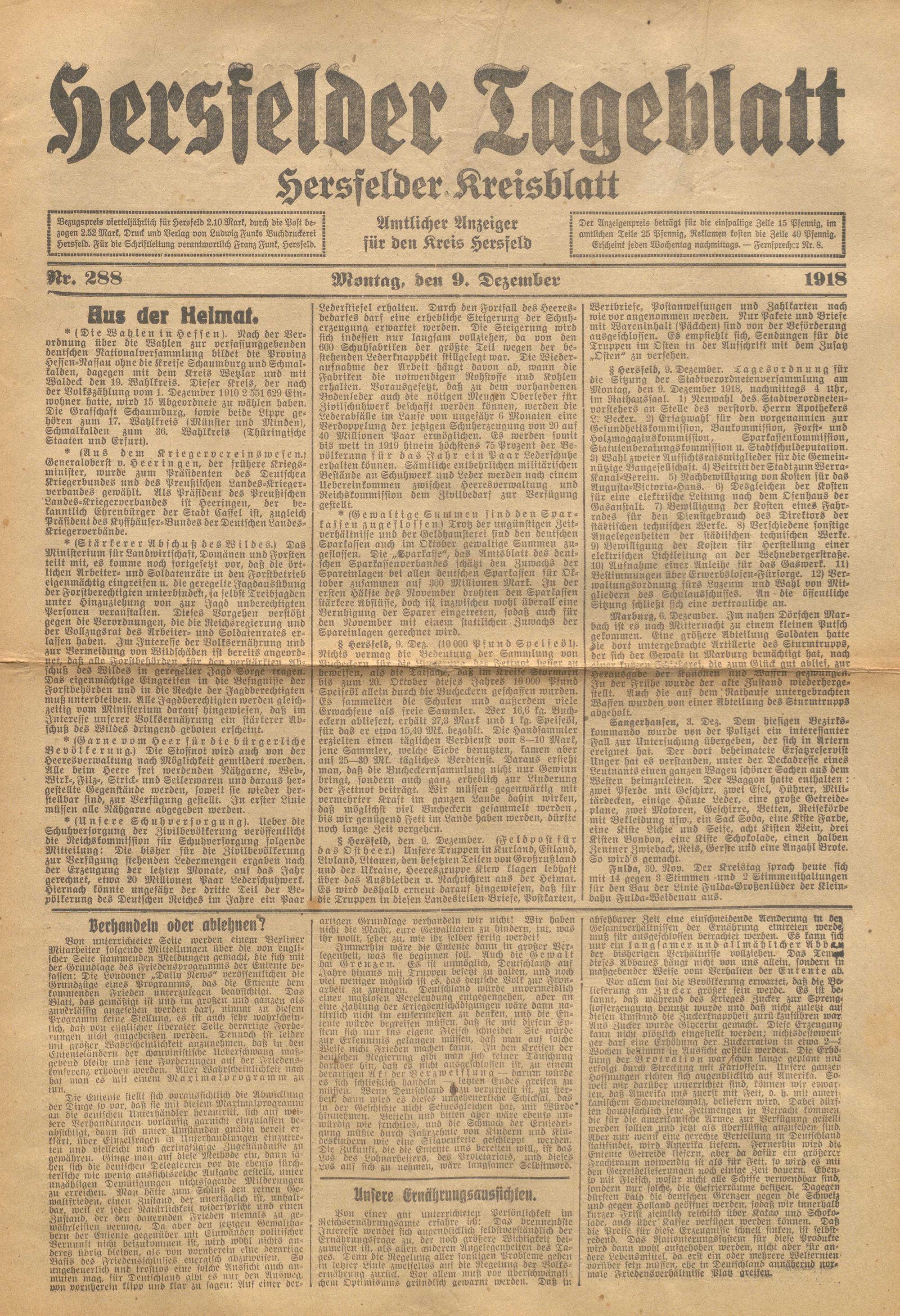 Hersfelder Tageblatt. 1913-1933