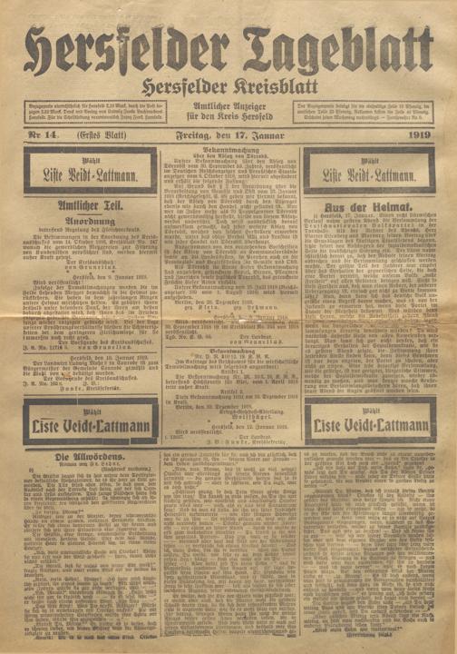 Hersfelder Tageblatt. 1913-1933