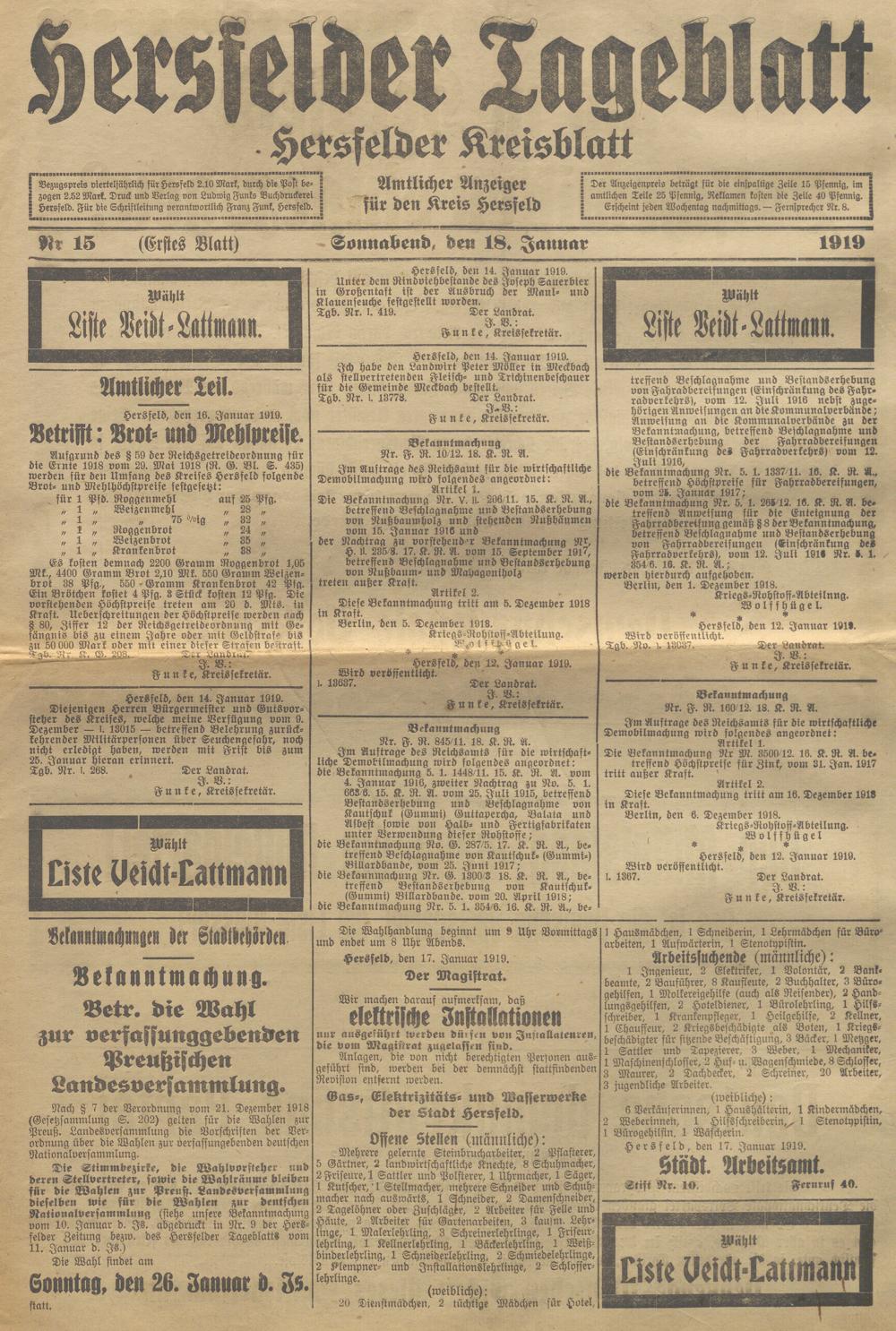 Hersfelder Tageblatt. 1913-1933