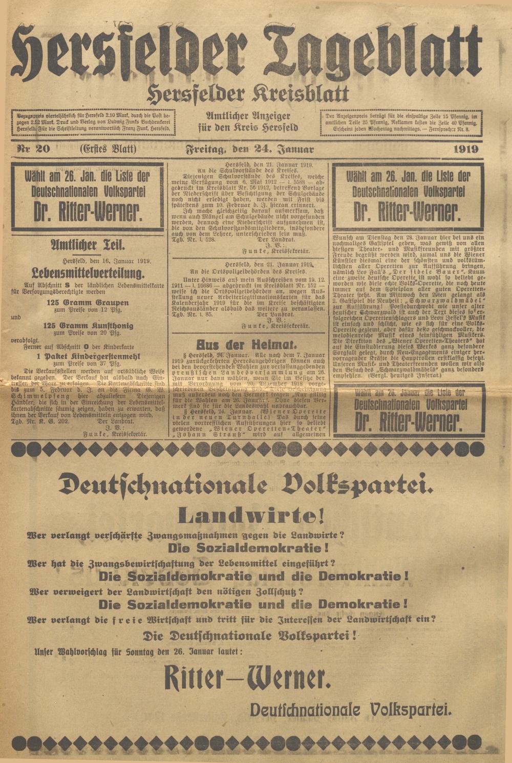 Hersfelder Tageblatt. 1913-1933