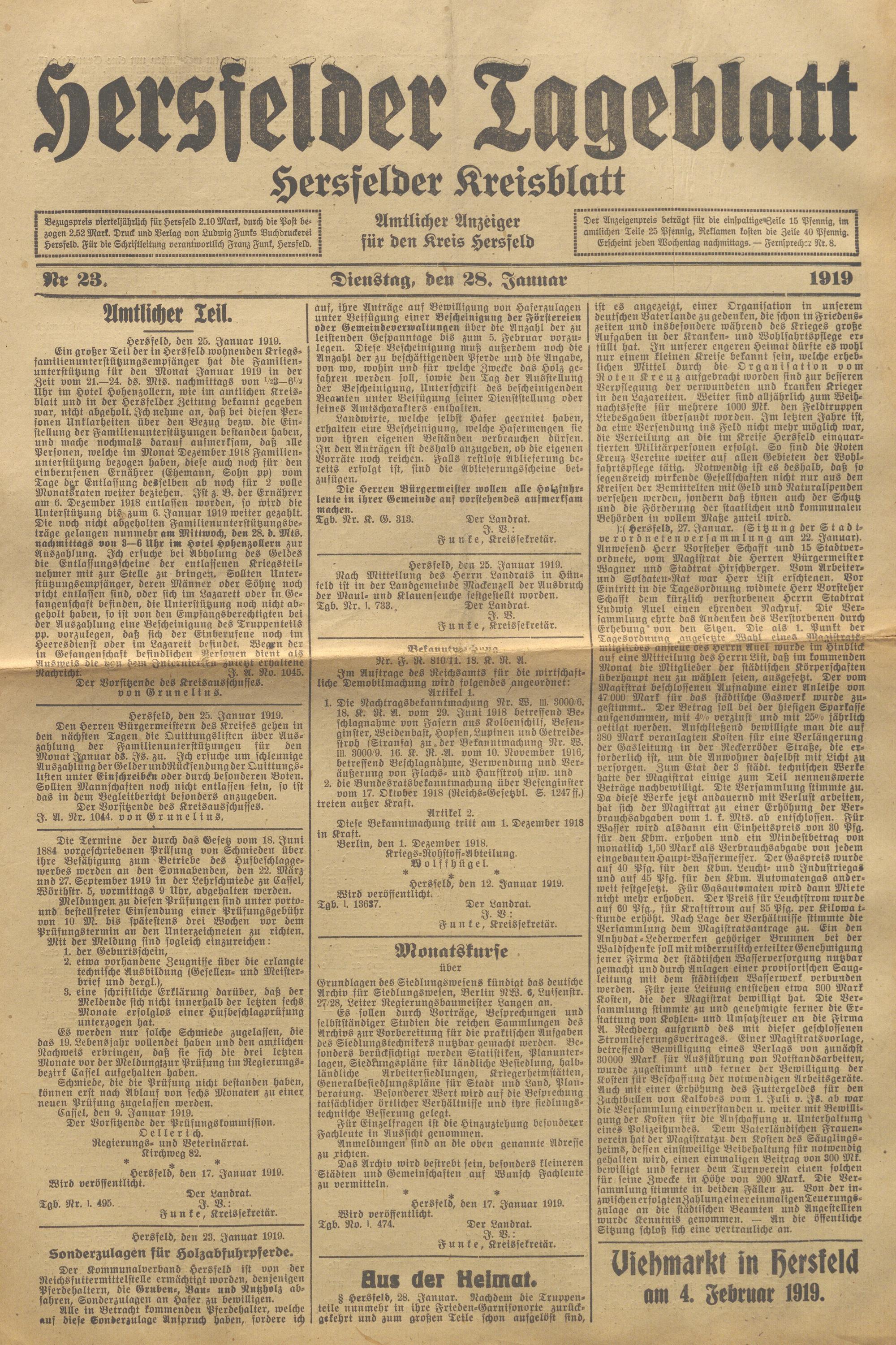 Hersfelder Tageblatt. 1913-1933