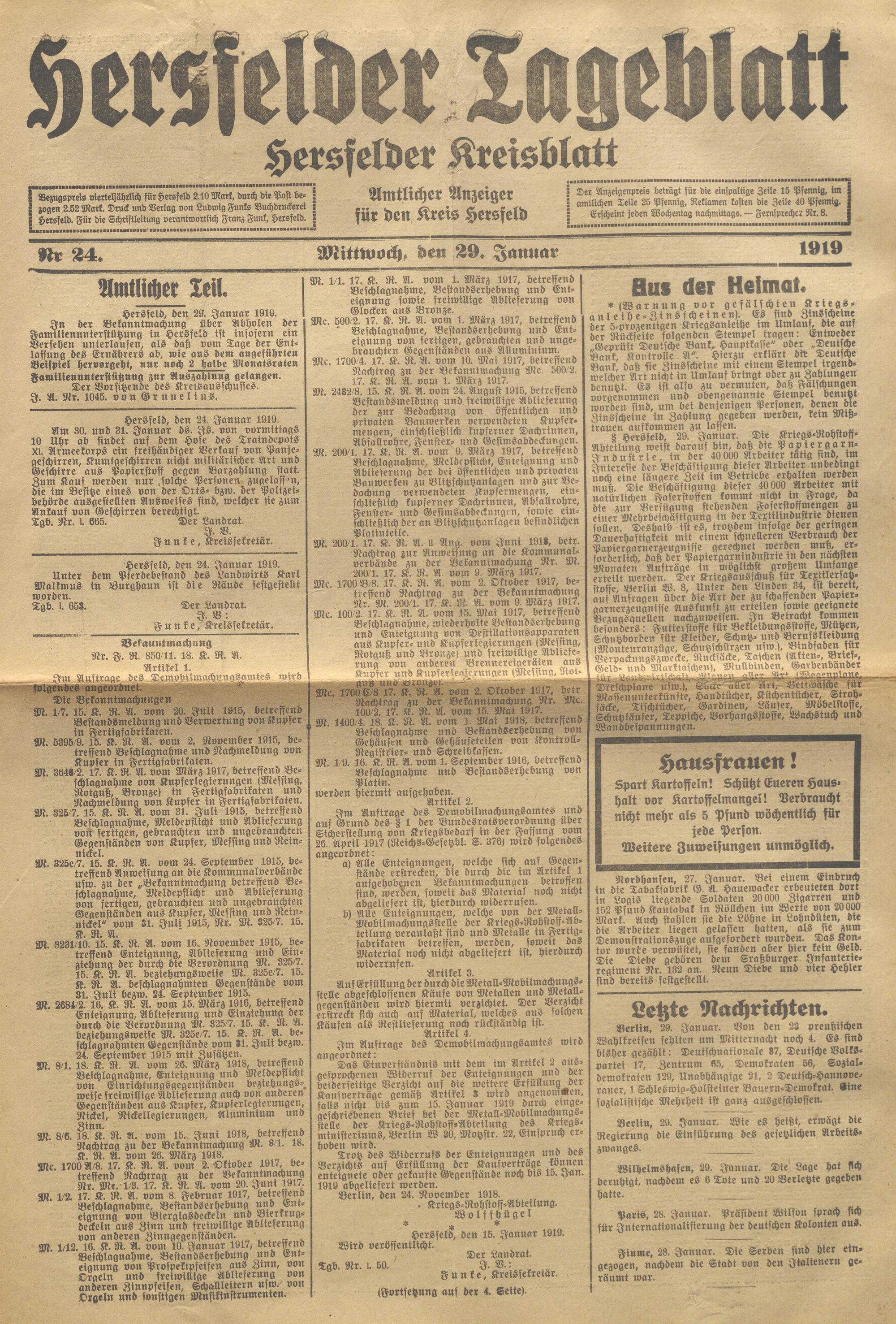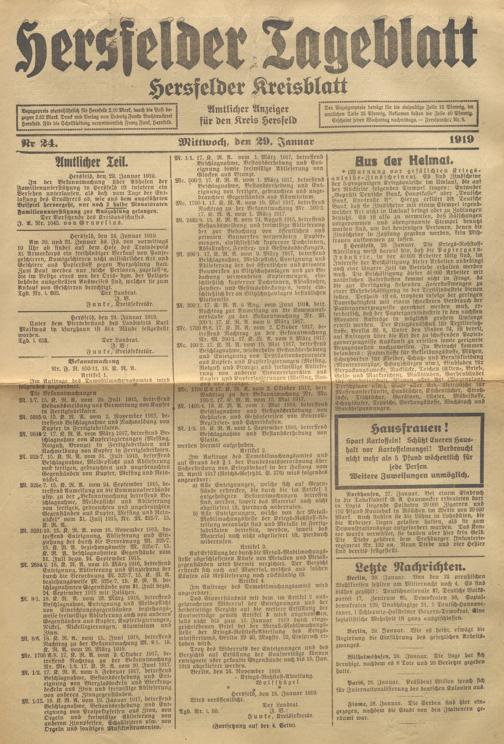Hersfelder Tageblatt. 1913-1933