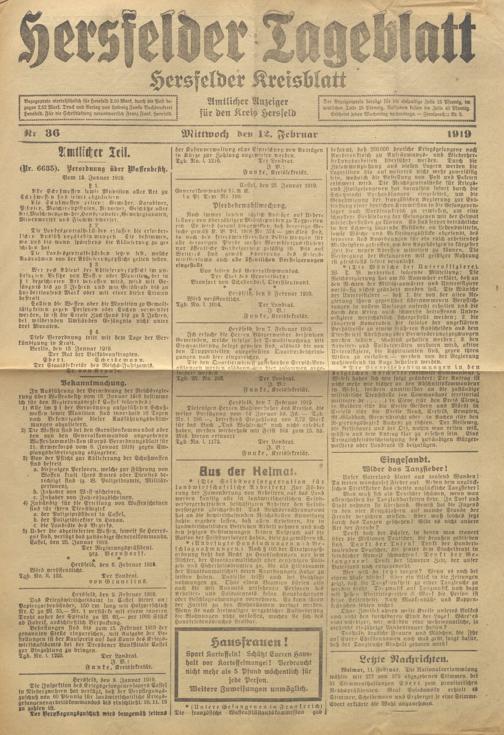 Hersfelder Tageblatt. 1913-1933
