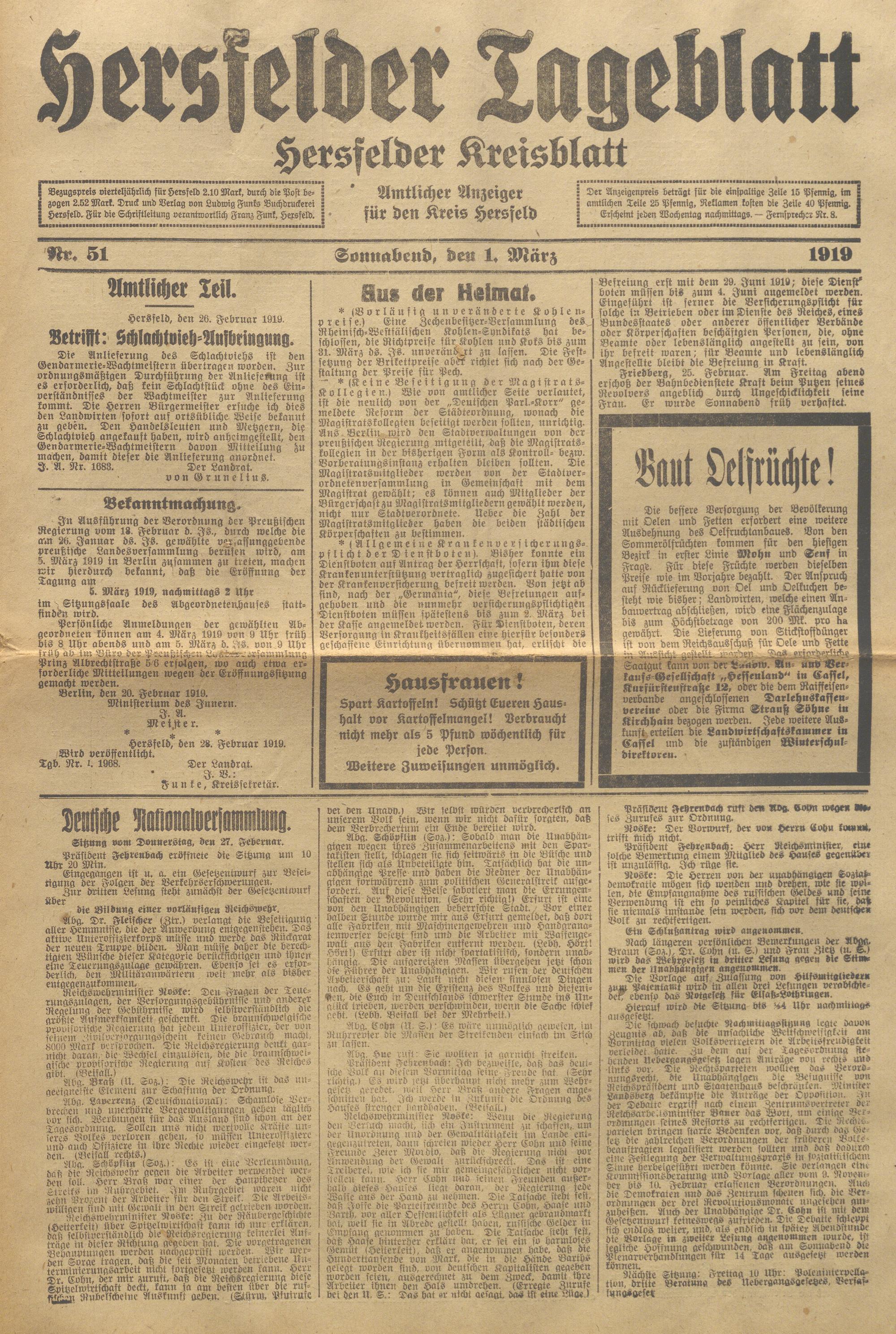 Hersfelder Tageblatt. 1913-1933