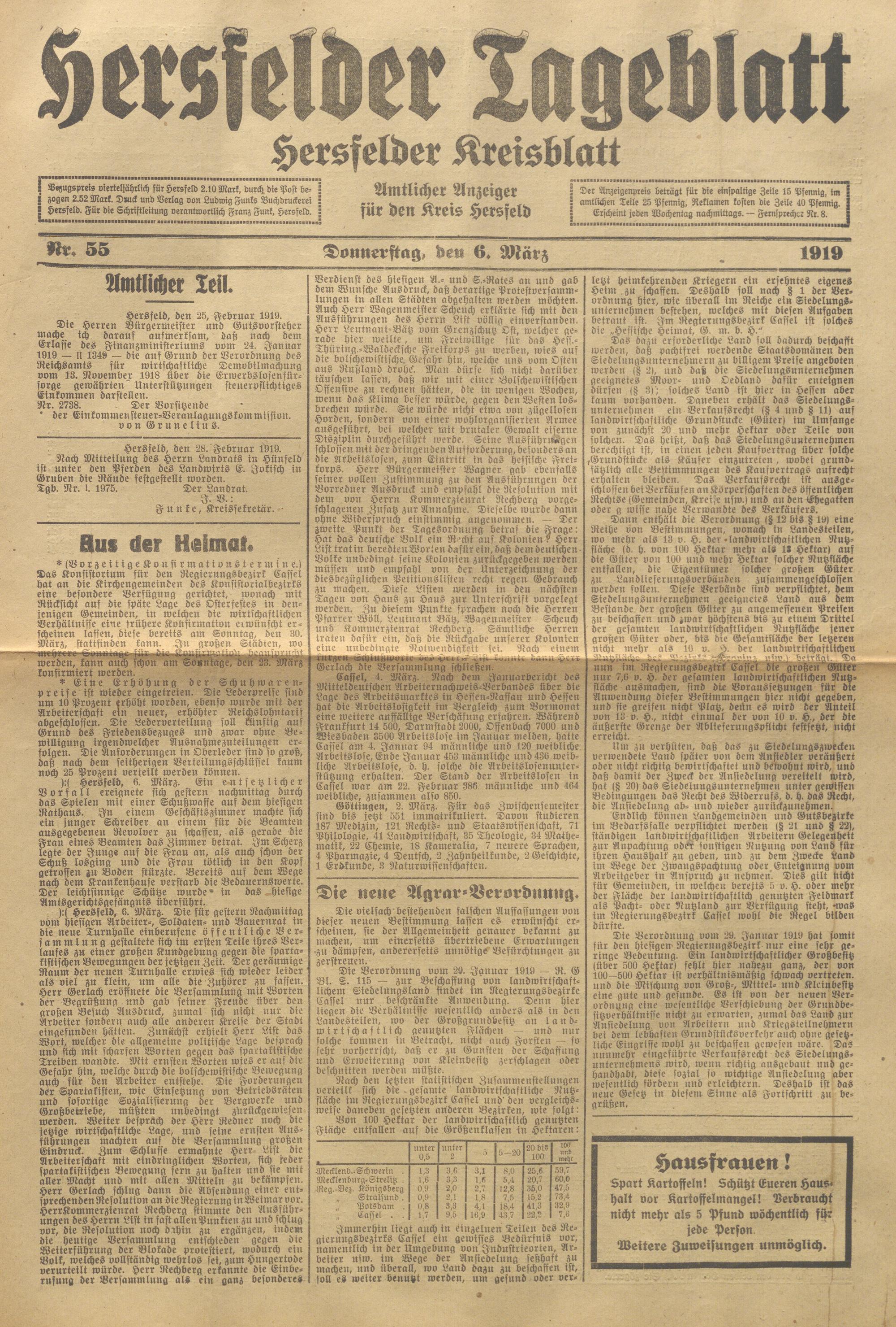 Hersfelder Tageblatt. 1913-1933