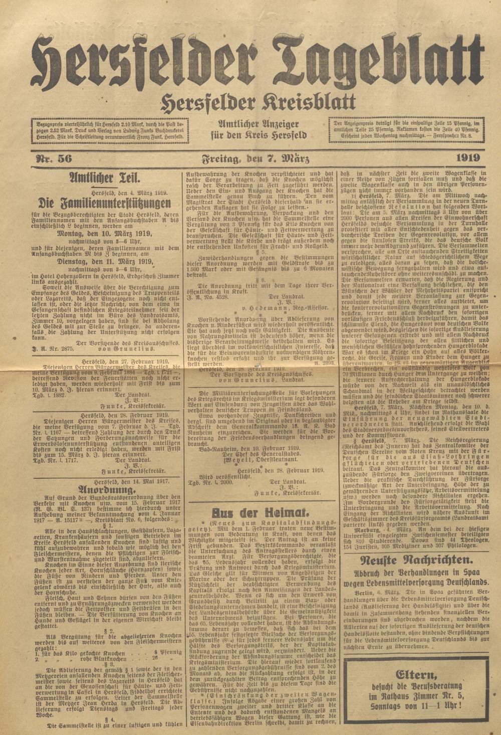 Hersfelder Tageblatt. 1913-1933