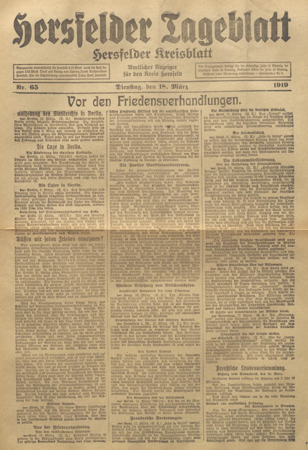 Hersfelder Tageblatt. 1913-1933