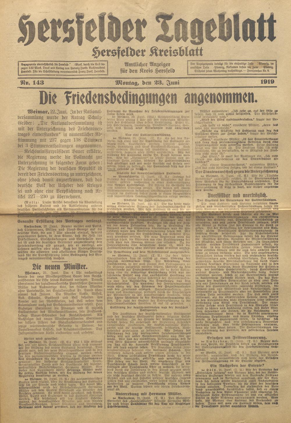 Hersfelder Tageblatt. 1913-1933