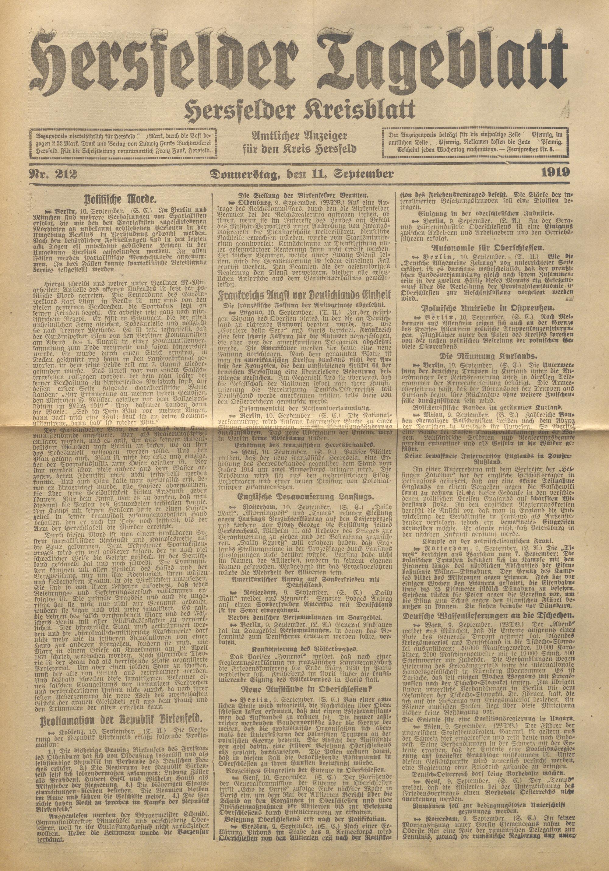 Hersfelder Tageblatt. 1913-1933