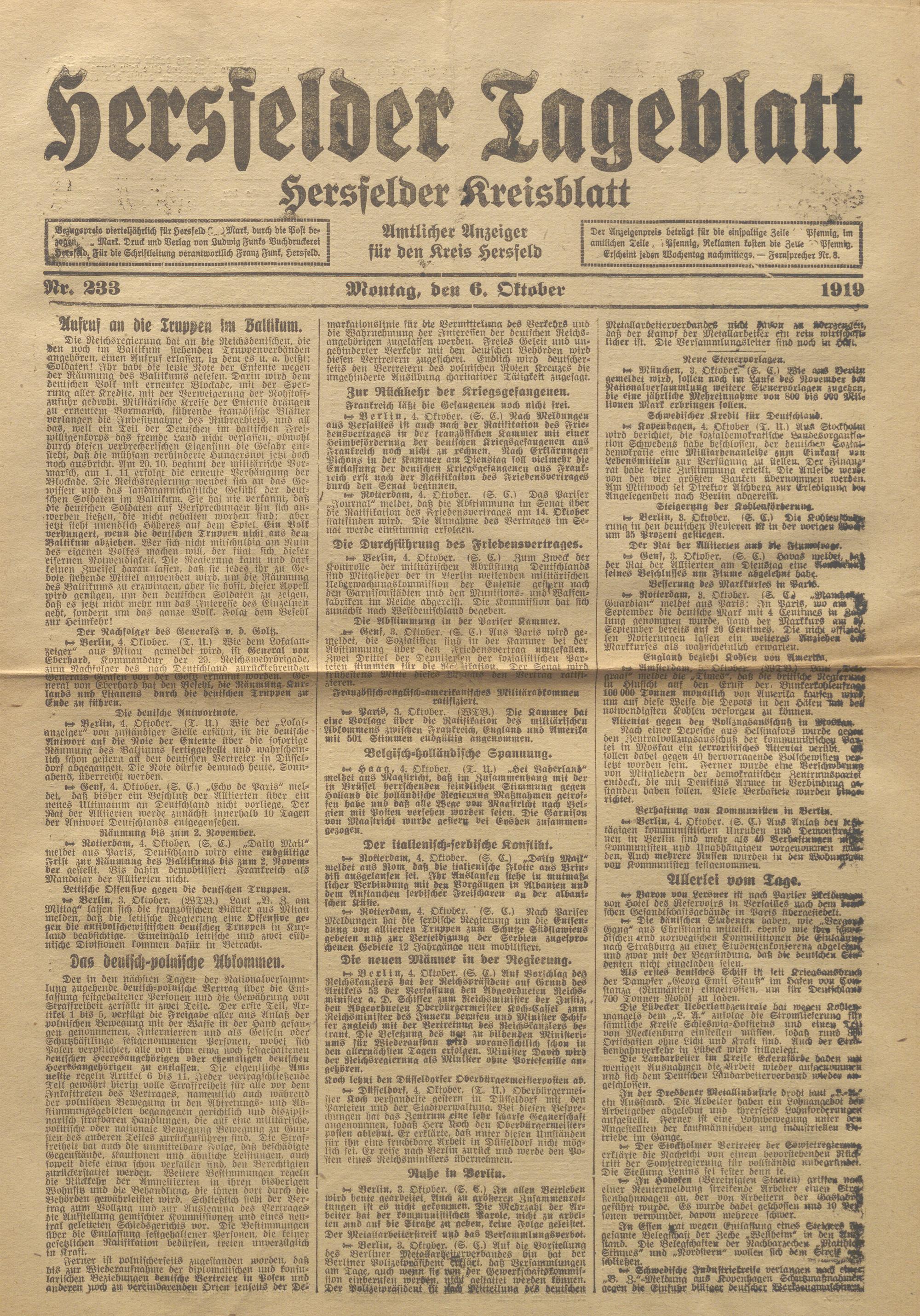 Hersfelder Tageblatt. 1913-1933