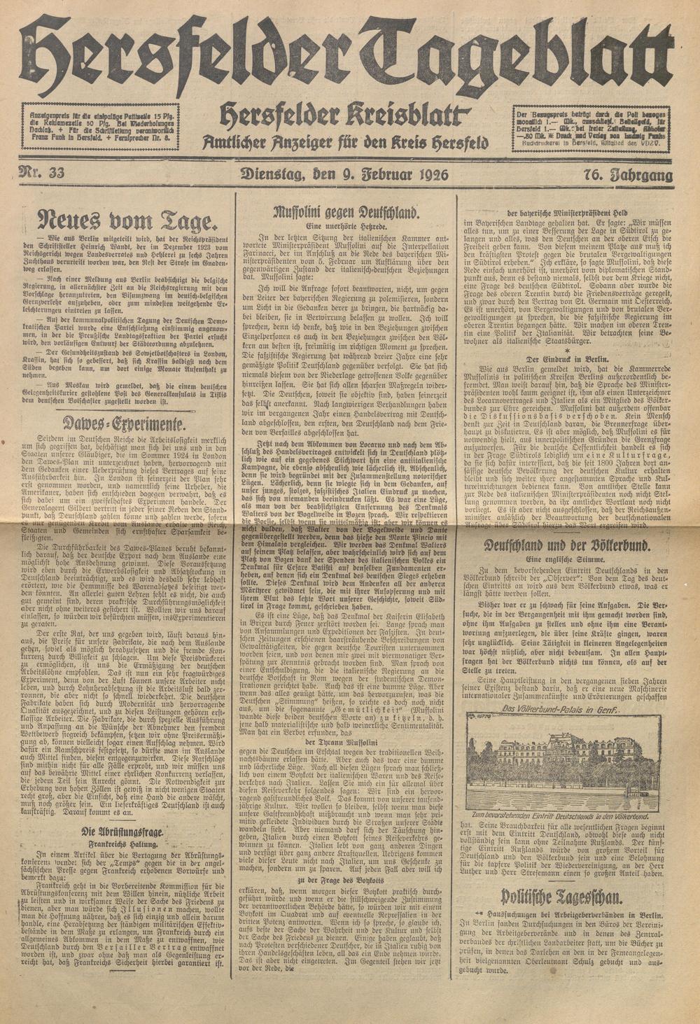 Hersfelder Tageblatt. 1913-1933