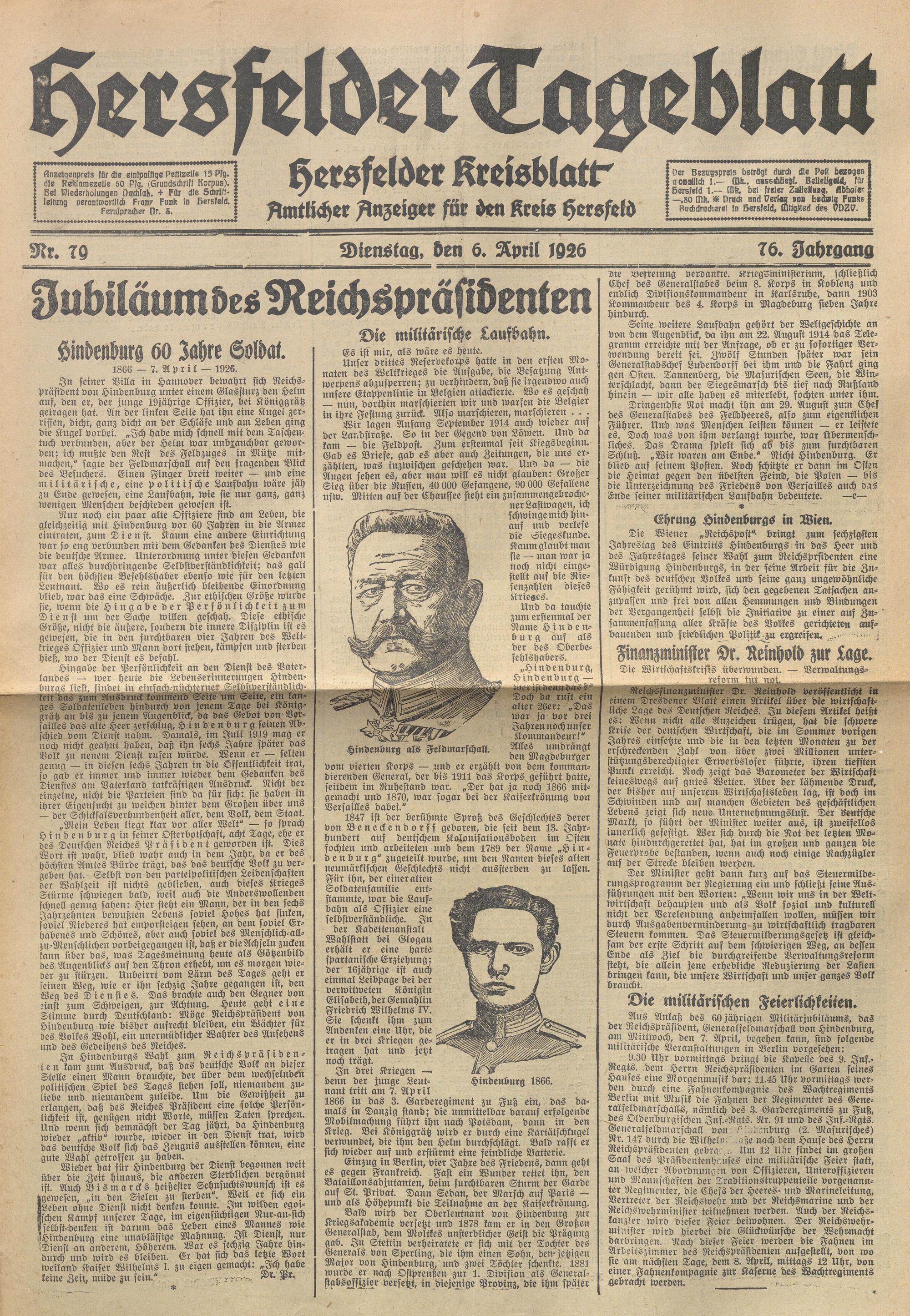 Hersfelder Tageblatt. 1913-1933