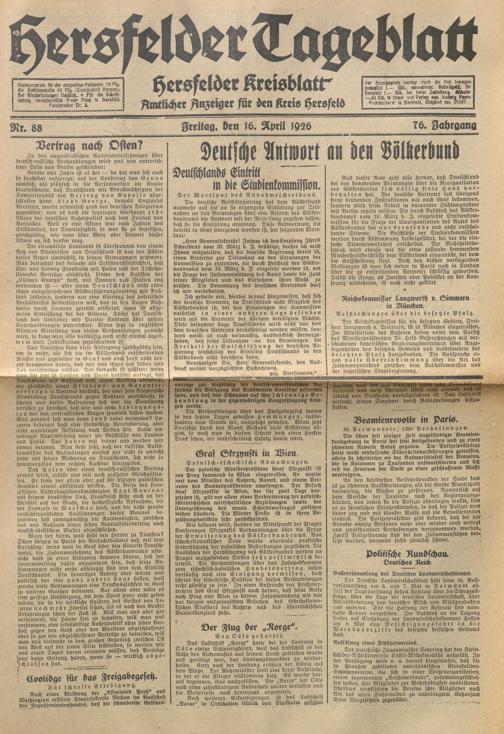 Hersfelder Tageblatt. 1913-1933