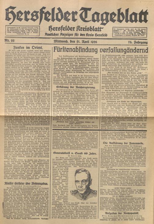 Hersfelder Tageblatt. 1913-1933