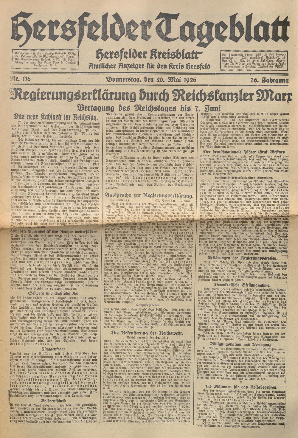 Hersfelder Tageblatt. 1913-1933