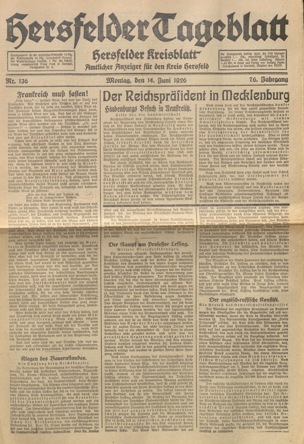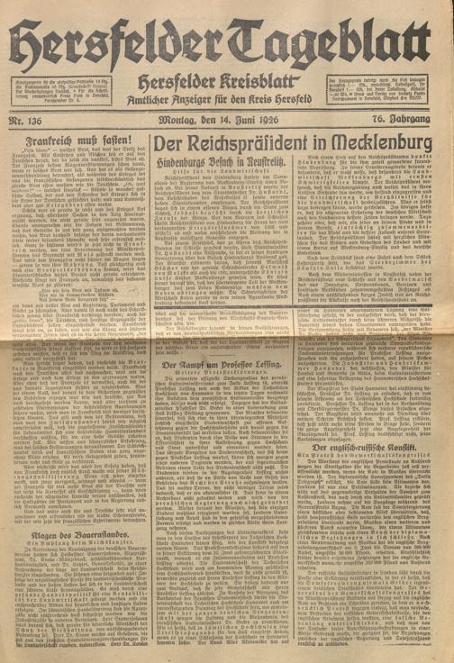 Hersfelder Tageblatt. 1913-1933