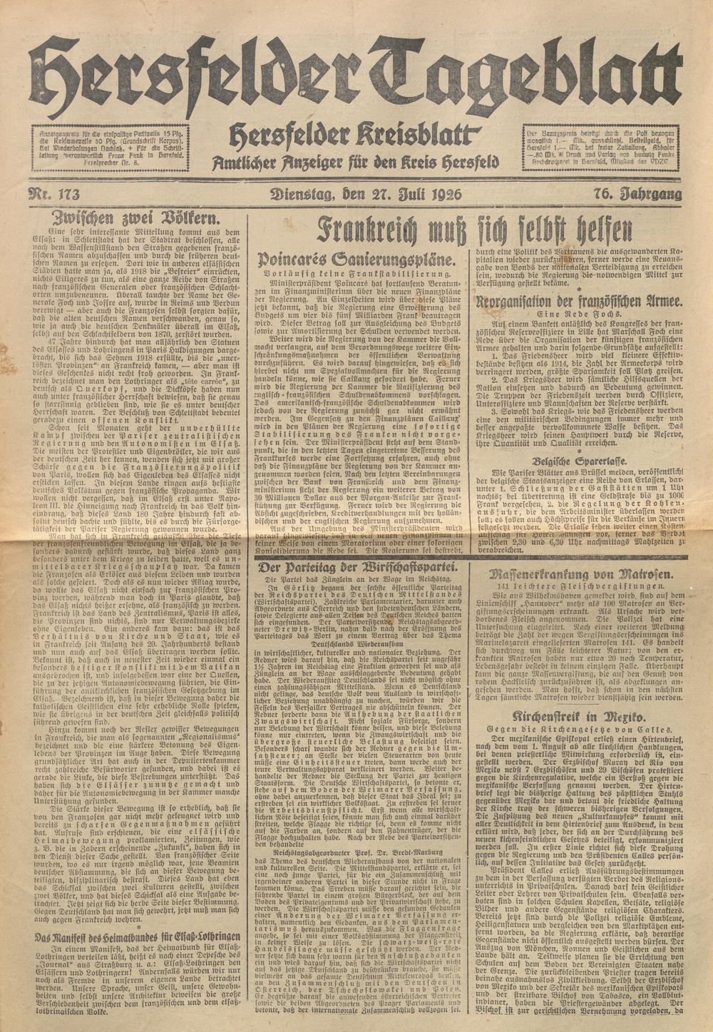 Hersfelder Tageblatt. 1913-1933