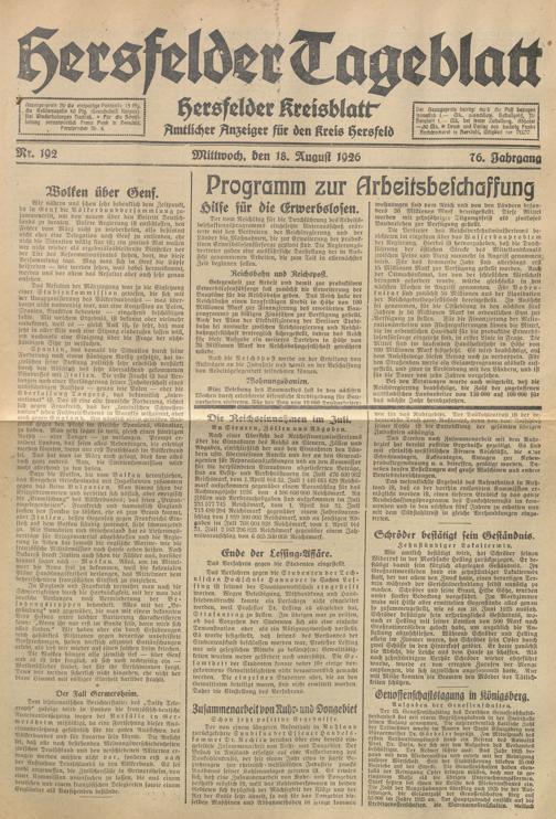 Hersfelder Tageblatt. 1913-1933