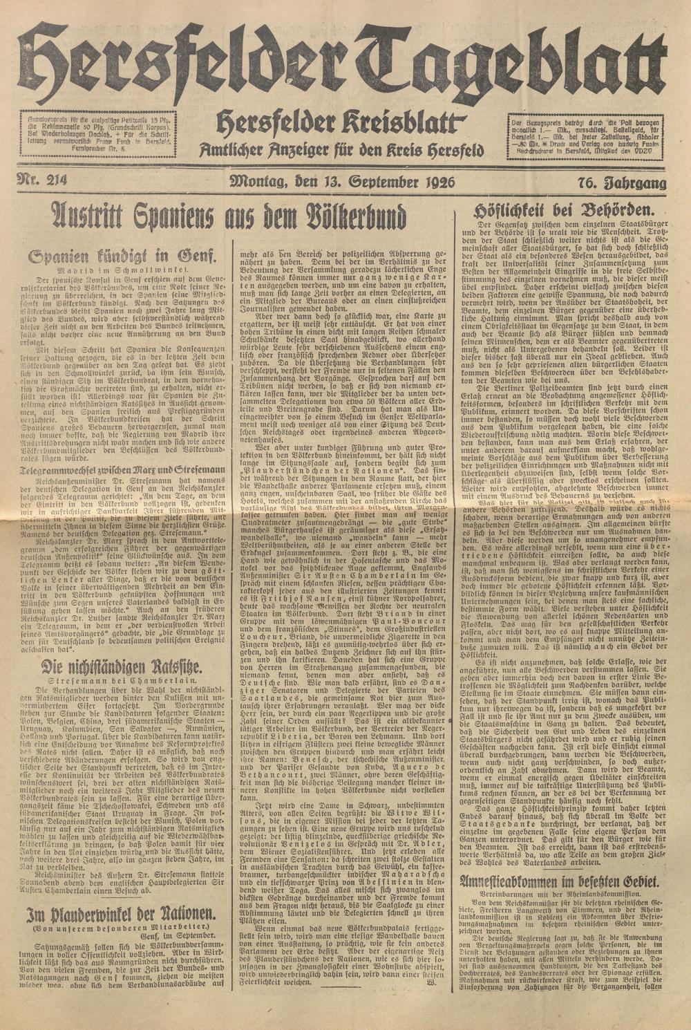 Hersfelder Tageblatt. 1913-1933