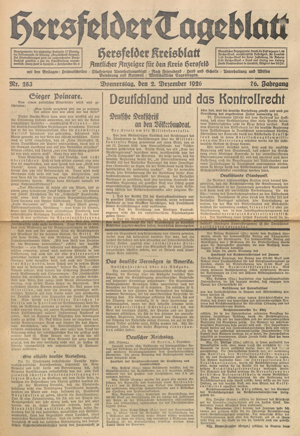 Hersfelder Tageblatt. 1913-1933