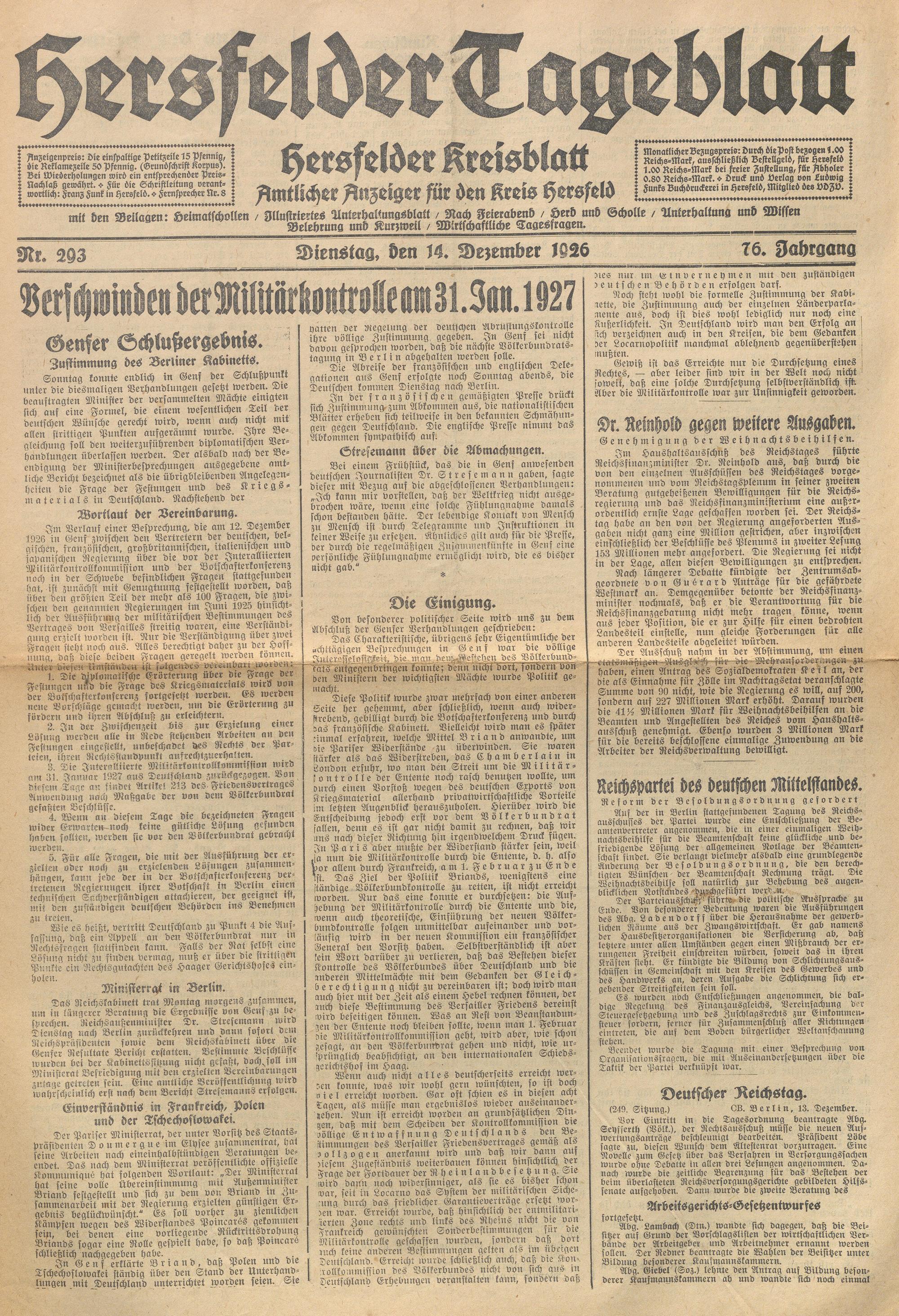 Hersfelder Tageblatt. 1913-1933