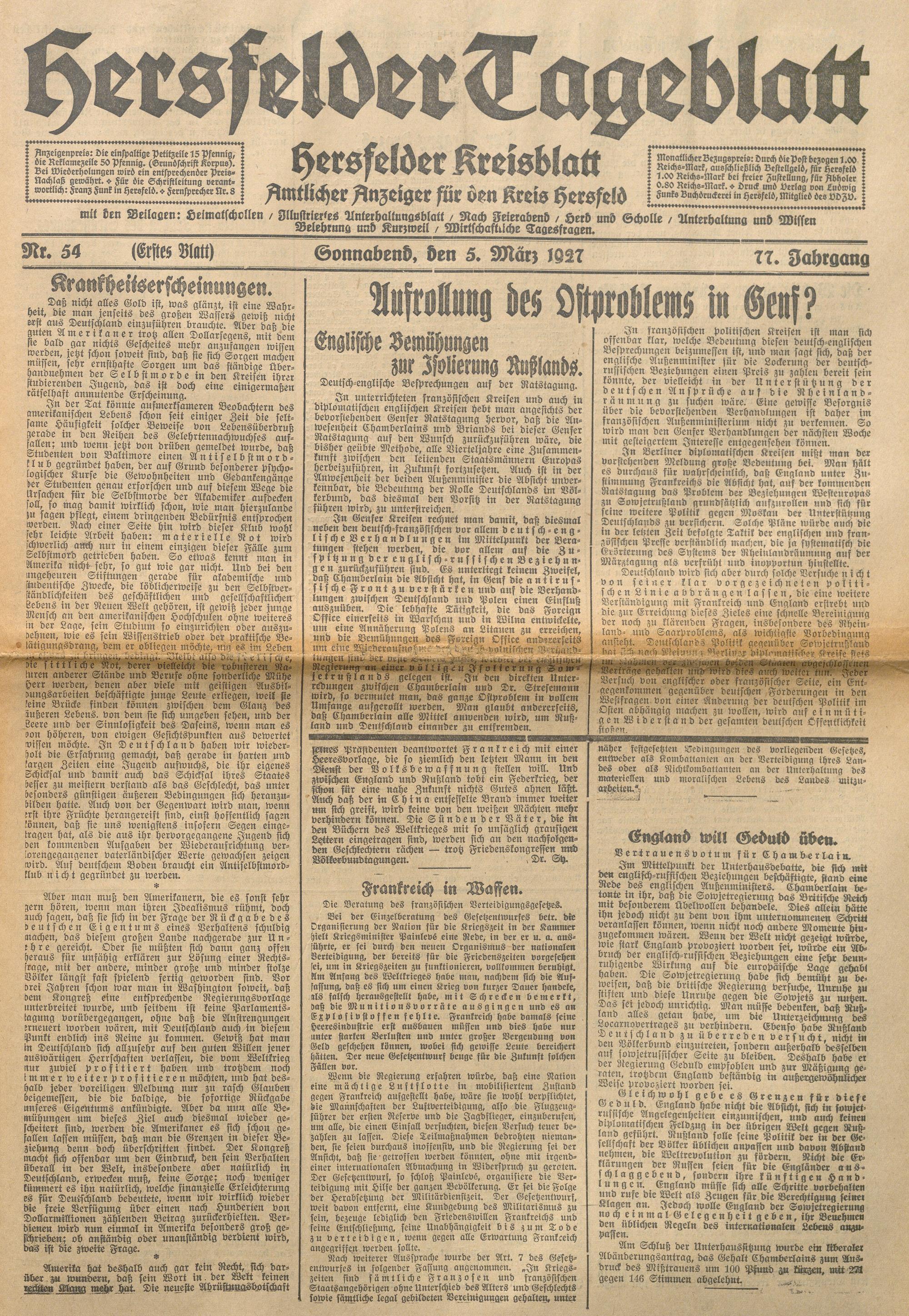 Hersfelder Tageblatt. 1913-1933