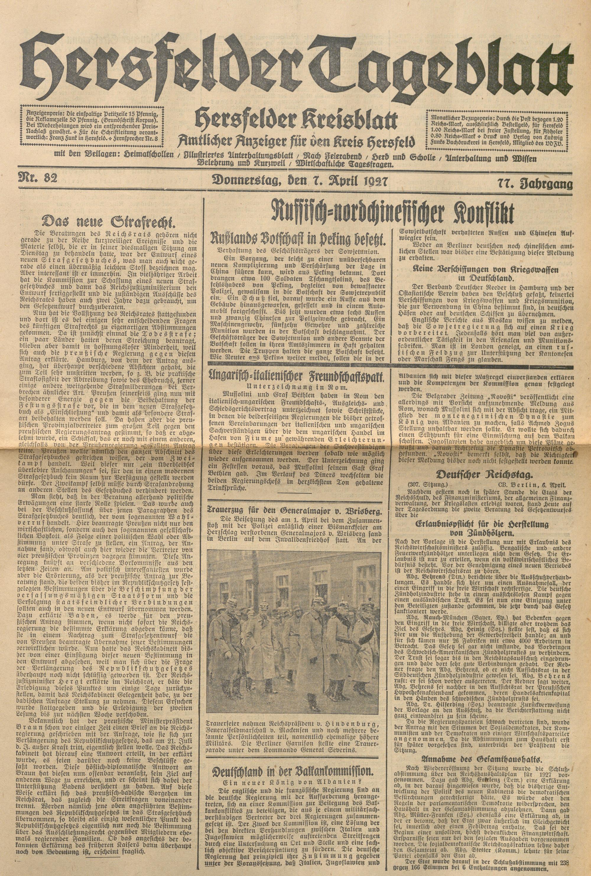 Hersfelder Tageblatt. 1913-1933