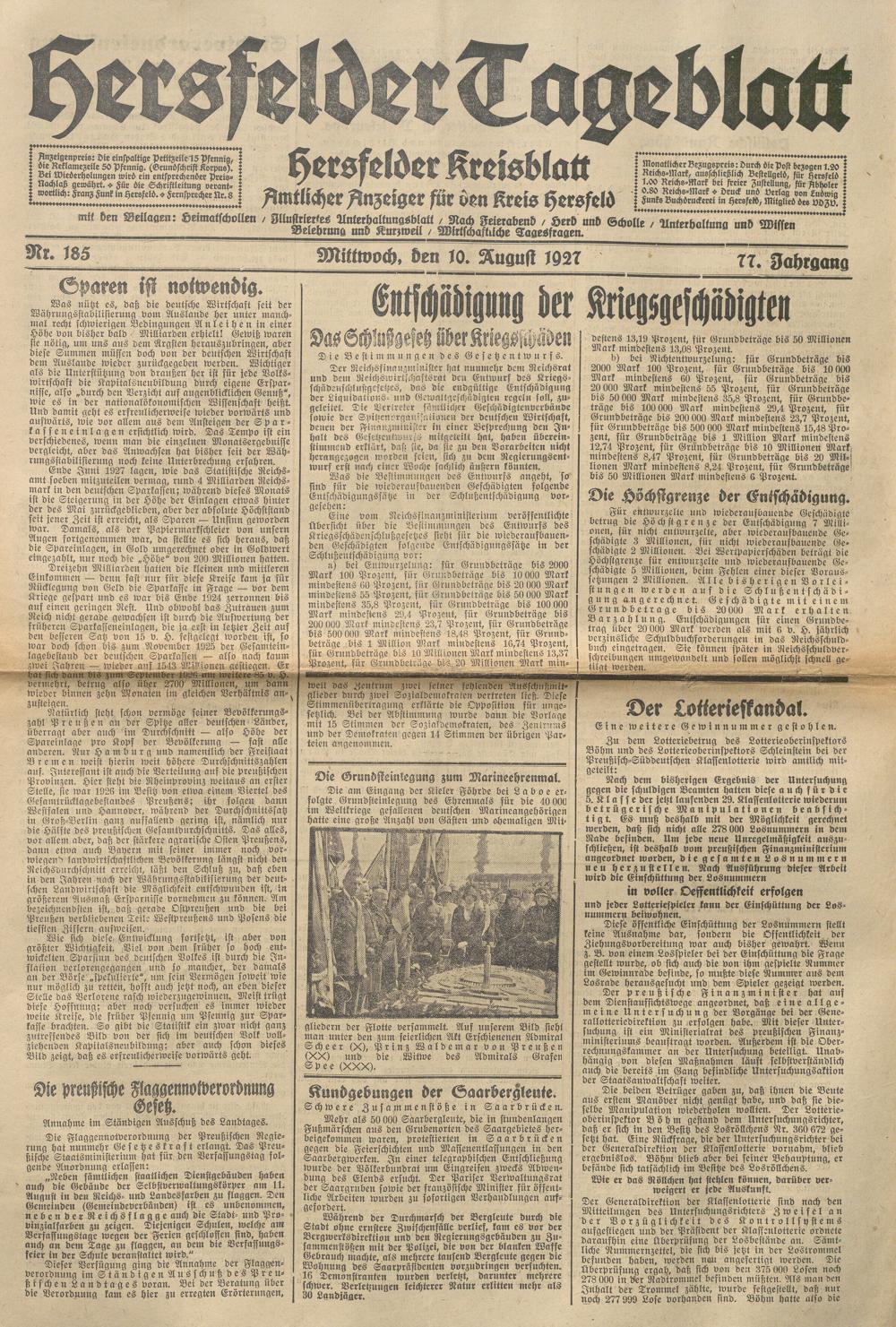 Hersfelder Tageblatt. 1913-1933