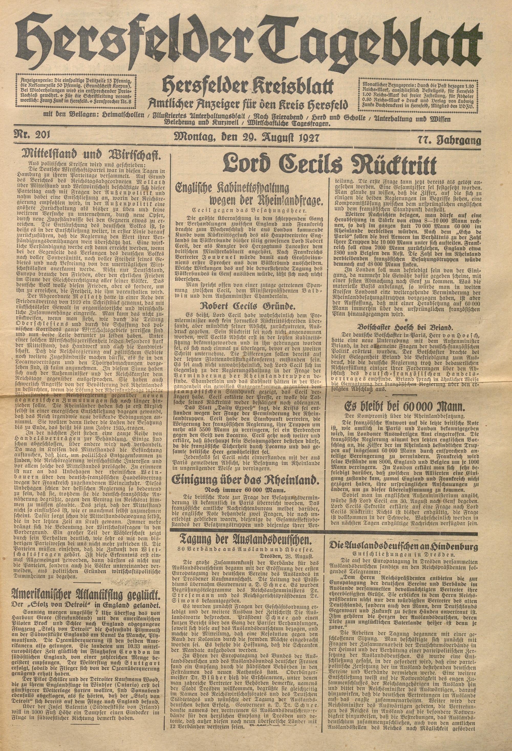 Hersfelder Tageblatt. 1913-1933
