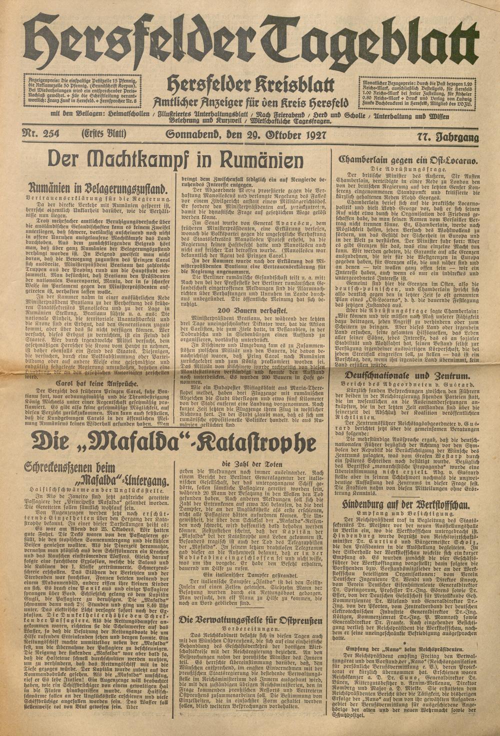 Hersfelder Tageblatt. 1913-1933