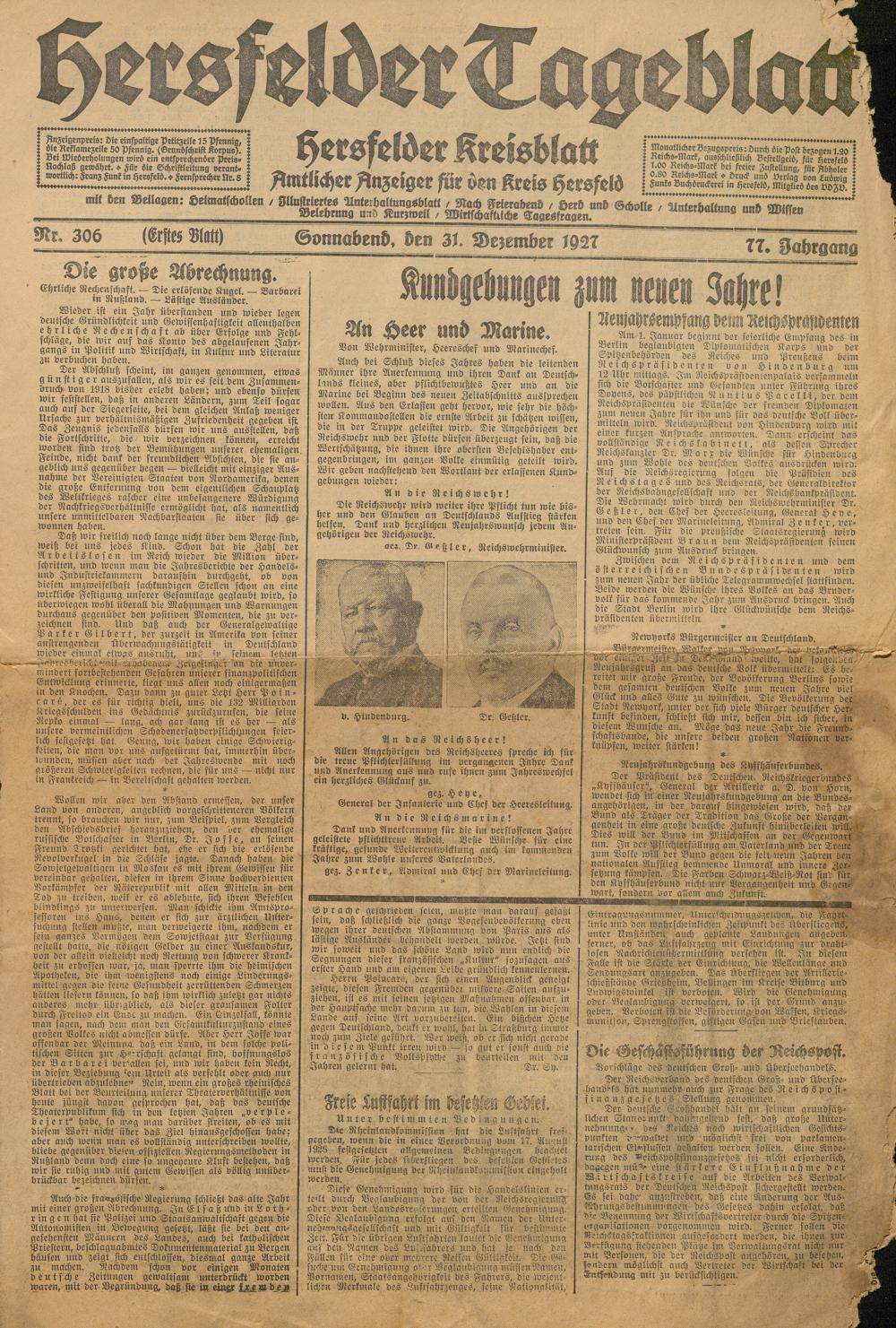 Hersfelder Tageblatt. 1913-1933