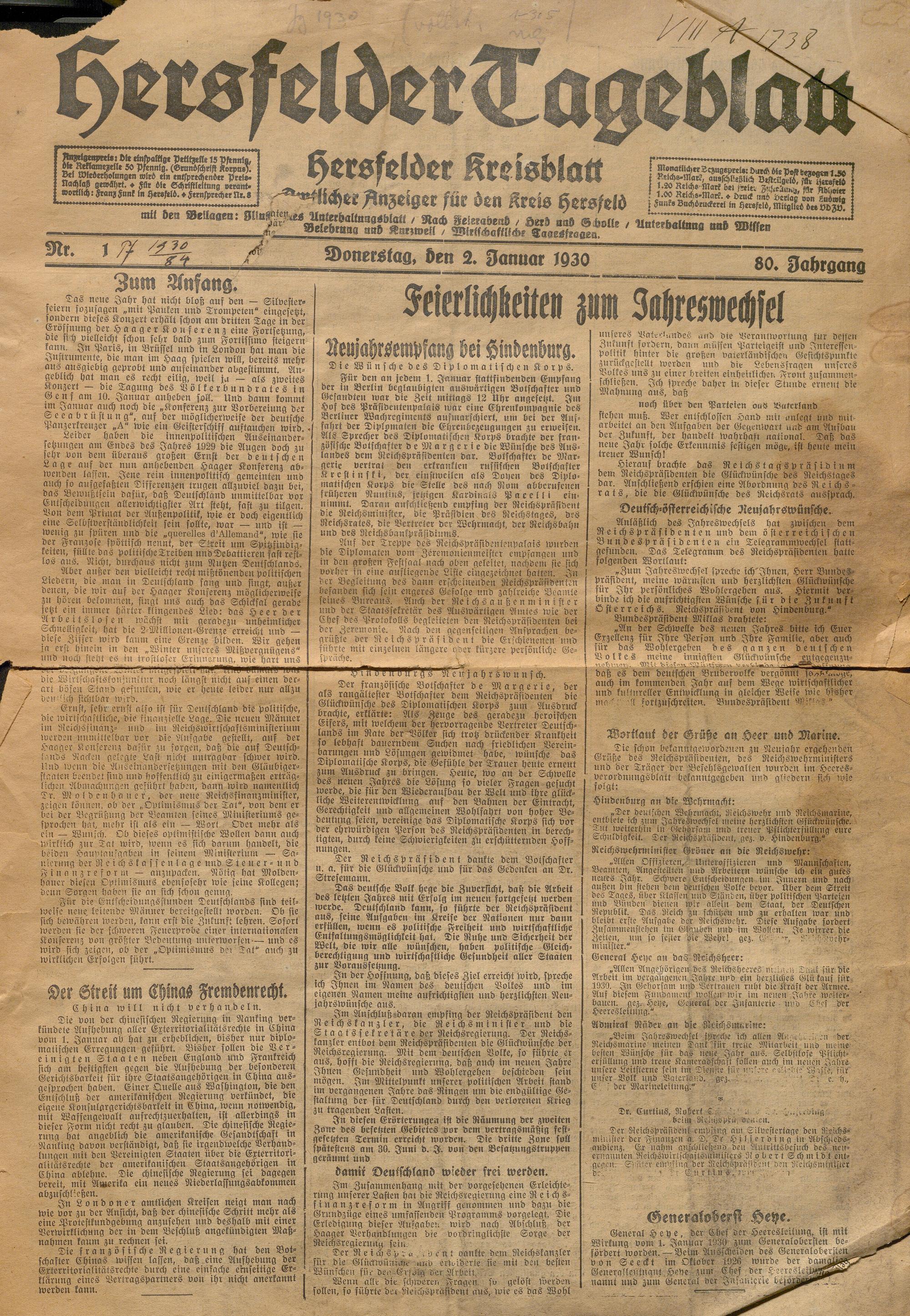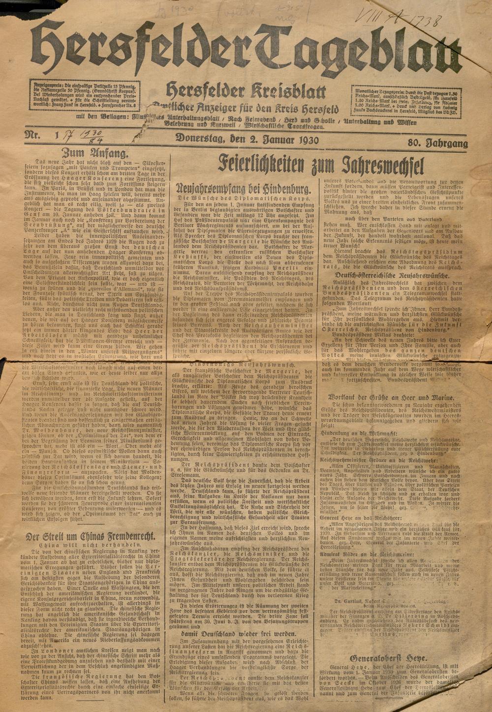 Hersfelder Tageblatt. 1913-1933