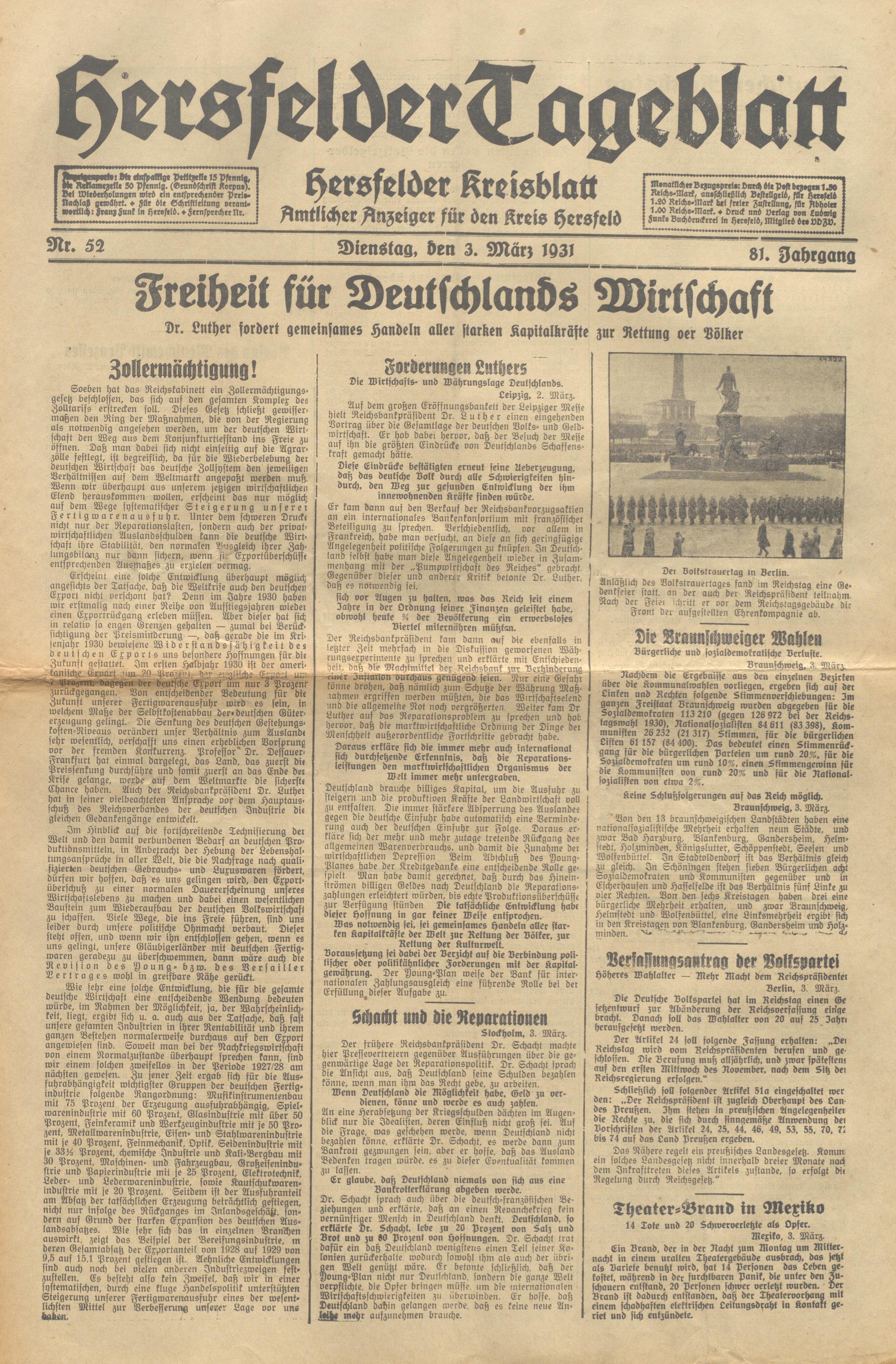 Hersfelder Tageblatt. 1913-1933