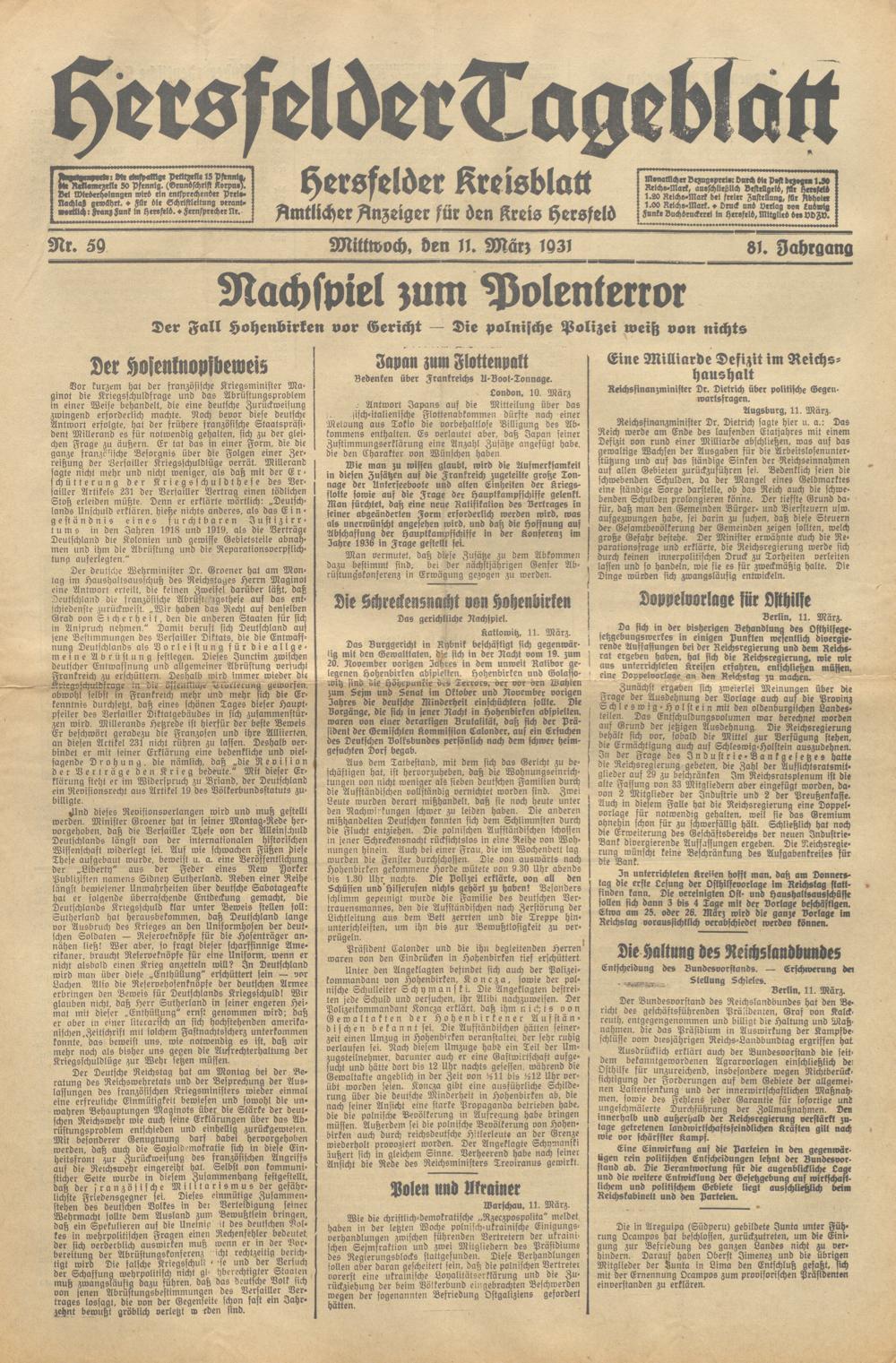 Hersfelder Tageblatt. 1913-1933